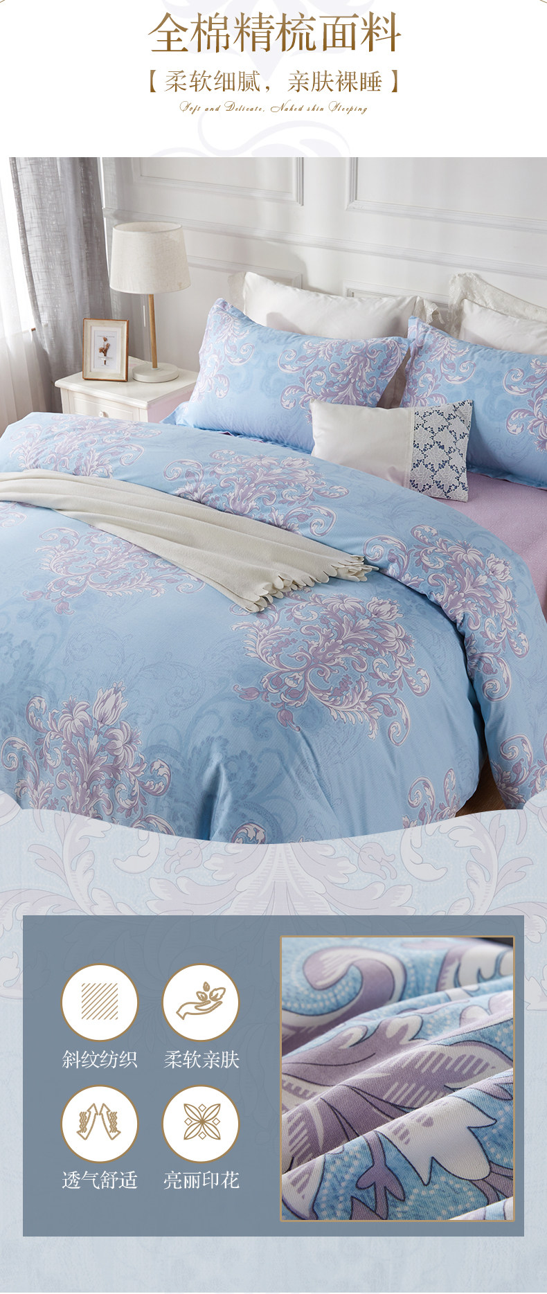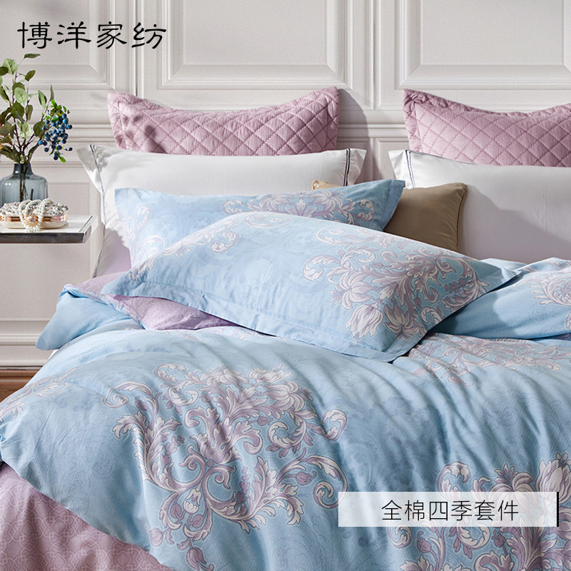 博洋 Хлопковый комплект, высококлассное покрывало, простыня, пододеяльник, 4 предмета, простой и элегантный дизайн, европейский стиль