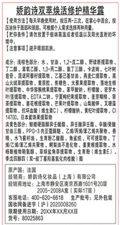 Придерживаясь последовательной приверженности натуральному сырью, 20 видов натуральных растений, таких как атрактилоды, перилла, алтей и семена розы, выбраны для непрерывного высвобождения пяти основных клеточных энергий: увлажнения, питания, аэробной, защиты и регенерации.В сочетании с передовой технологией экстракции и разделения и сложной системой «золотое сечение вода + масло» гидрофильные и липофильные активные факторы против старения с различной молекулярной структурой экстрагируются в двойные флаконы. В одном флаконе содержатся две антивозрастные эссенции высокой концентрации, что не только решает проблему сложного смешивания водорастворимых и маслорастворимых ингредиентов, но также позволяет избежать риска использования стабилизаторов-эмульгаторов.Одна капля высвобождает двойную антивозрастную эссенцию, которая комплексно улучшает способность кожи к самовосстановлению!.Постоянно восстанавливает гладкость, упругость, эластичность и даже яркость кожи, придавая ей сияние молодости.
