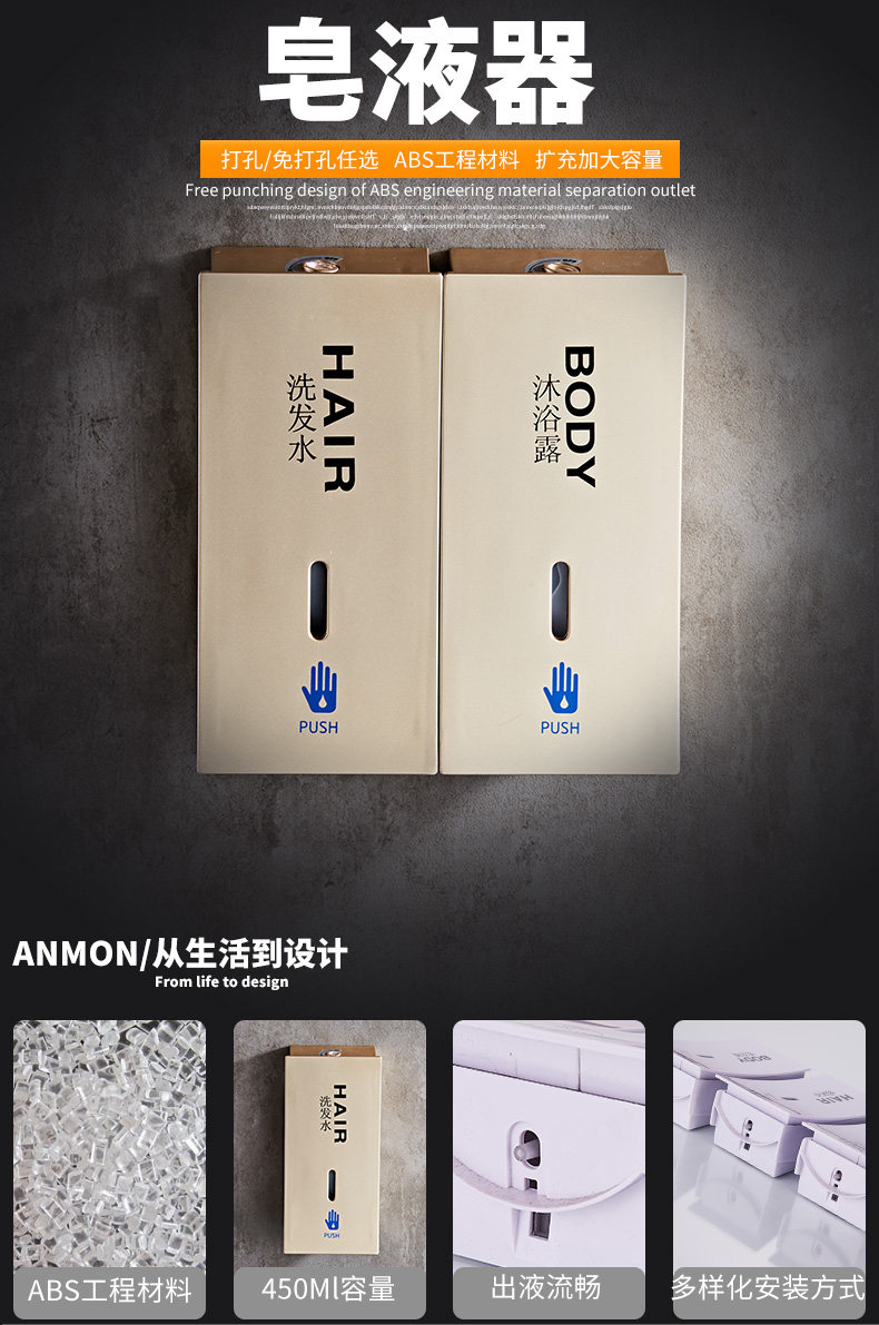 Стена базилизатора -Гель -гель отеля, домашний туалетный отель, ванная комната для ванной комнаты, бутылка для мытья рук.