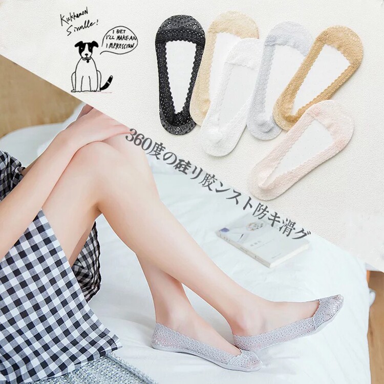Японские летние кружевные невидимые колготки, силиконовые нескользящие коньки, подошва, гетры с низким вырезом