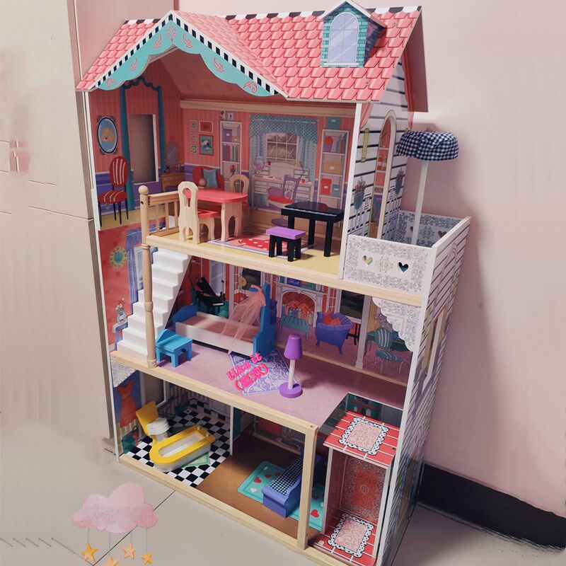 Деревянный семейный кукольный домик, игрушка, замок для принцессы, вилла