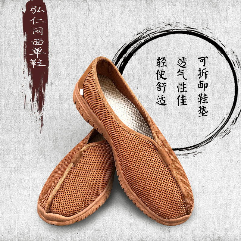 Буддийское мастерство толстое упражнение Мягкое дно, летняя сетка, сеть дышащая вставка из анестральной ткани, туфли для монашков, одиночные туфли Luohan обувь