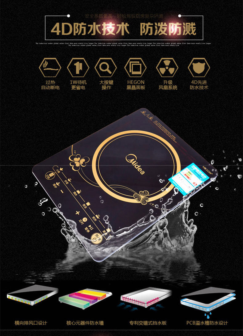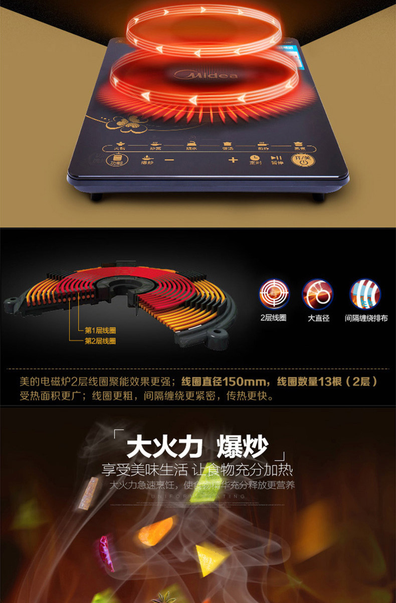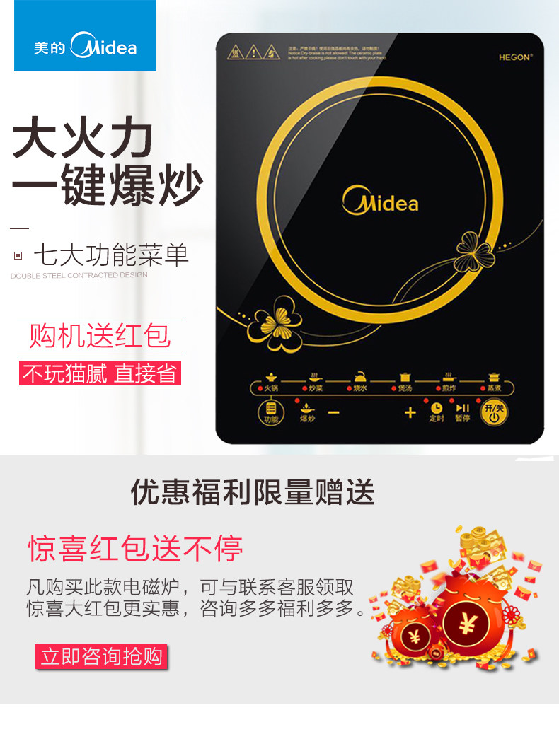 Midea/Midea's RT2160 Индукционная плита Домохозяйственная труба Жареная батарея батарея батарея пихт с пихтой из пих