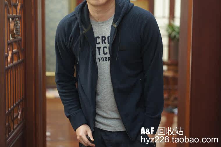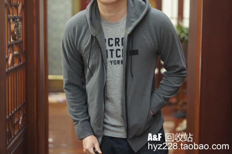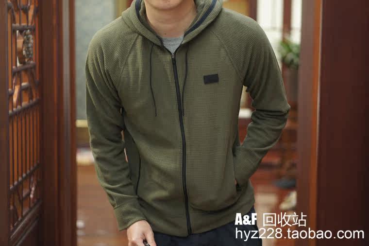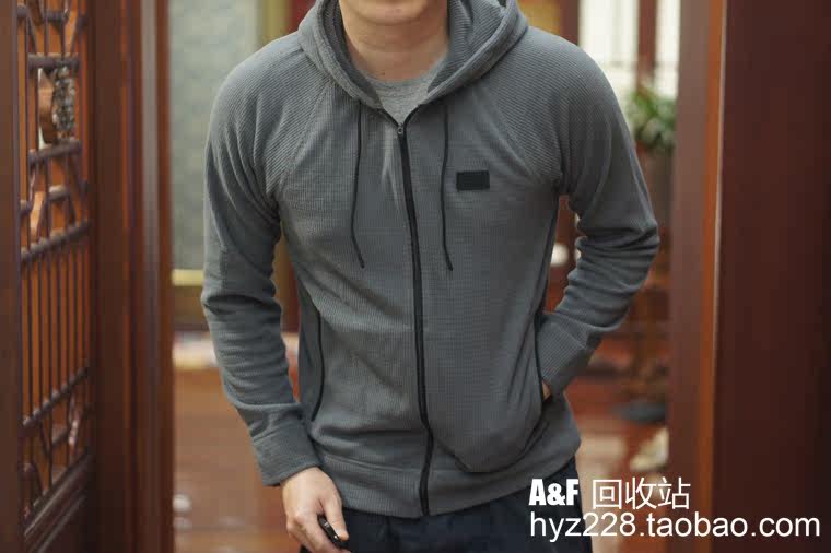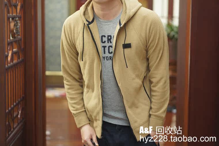 Американская подлинная мужская толстовка с капюшоном на молнии AF вафельного цвета Abercrombie Fitch 18