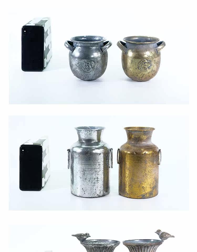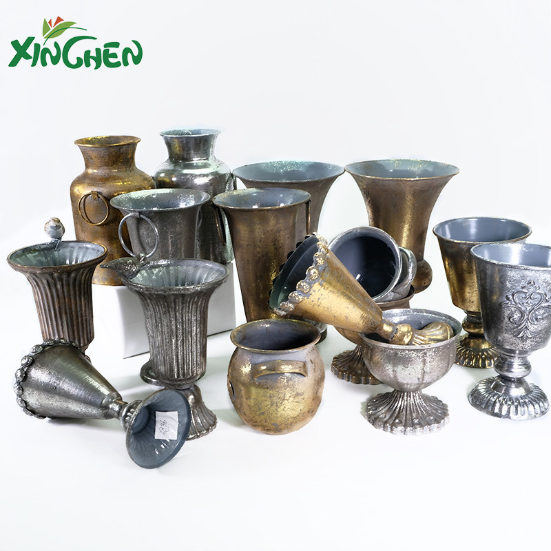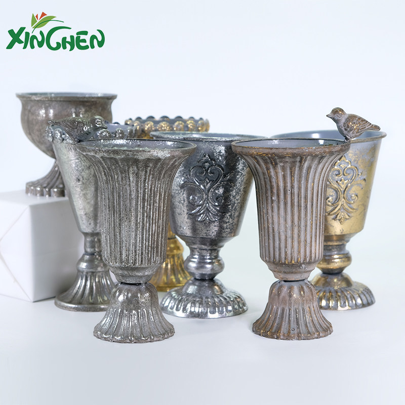 Металлическая серебряная ручка, ретро цветочный горшок, стенд