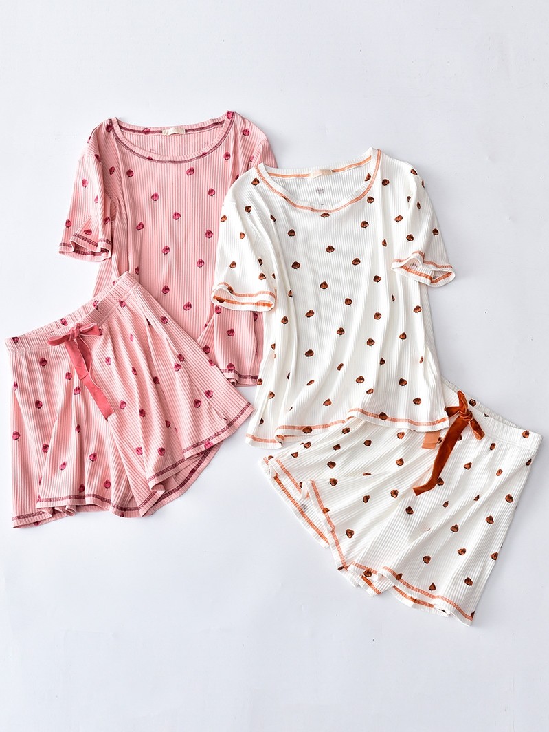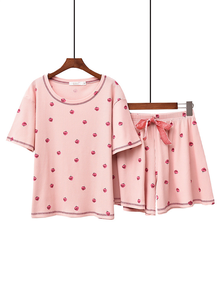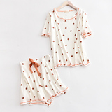 Хлопковая пижама, хлопковые шорты для отдыха, клубника, цветочные композиции, комплект, короткий рукав