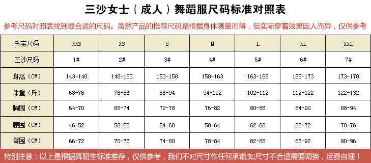 Поскольку танцевальные принадлежности являются специальными типами одежды, модели и методы измерения различны. Существует небольшой разрыв между фактическим размером продукта и предоставленными нами данных. Это нормальное явление. Если вы не можете его подтвердить, пожалуйста, свяжитесь с клиентом. Служба и проверить.Обслуживание клиентов дает только верхний тип телосложения, предоставляемый родственниками, чтобы дать мнение о покупке, пожалуйста, сохраните окончательное решение.Если размер неуместен, вы можете связаться с нами, чтобы обменять товар с нами в течение 3 дней после получения.