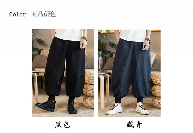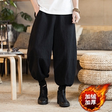 Летние китайские штаны, фонарь, китайский стиль, оверсайз, из хлопка и льна