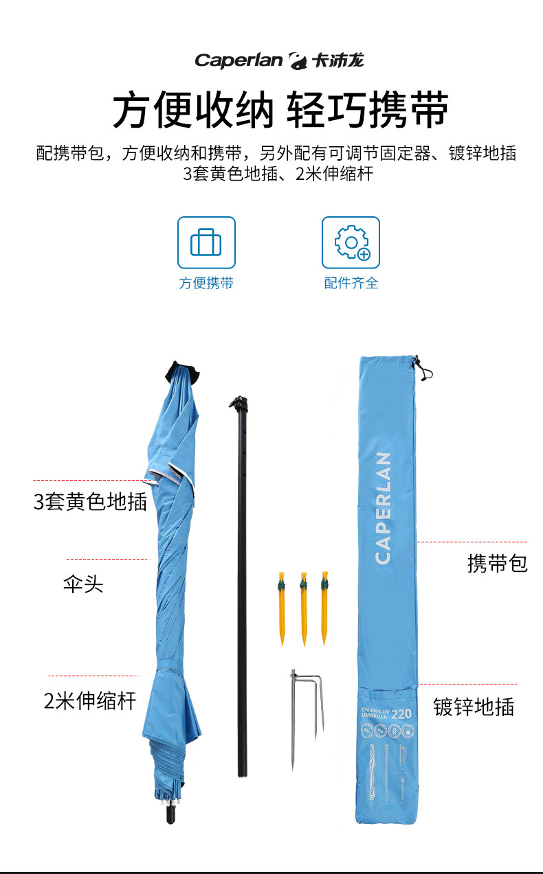 Decathlon Outdoor зонтик зонтик зонтик зонтик на открытом воздухе солнцезащитный зонтик зонтик анти -кровоточа