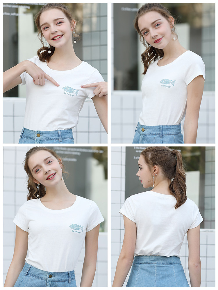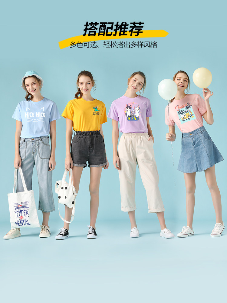 艾米恋 Хлопковая белая мультяшная футболка с круглым воротником, короткий рукав, 2020 года, оверсайз