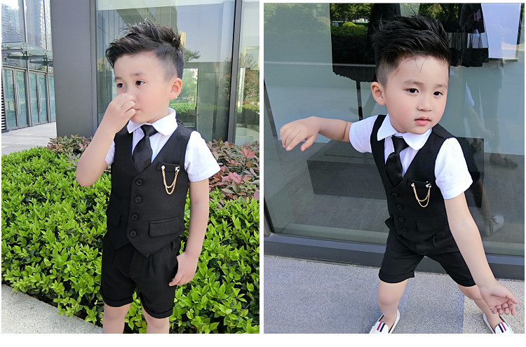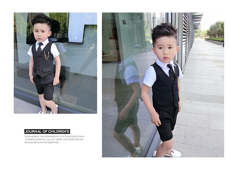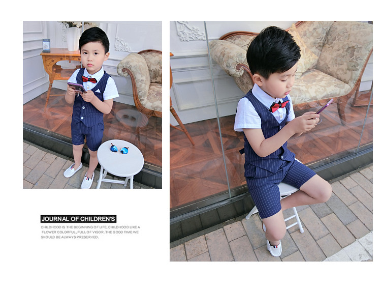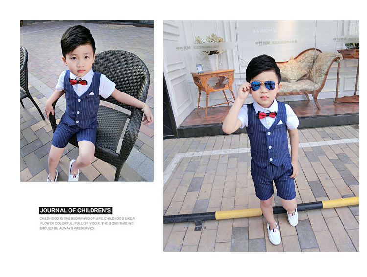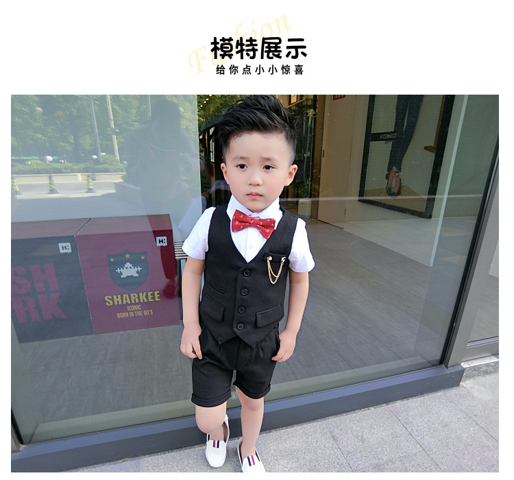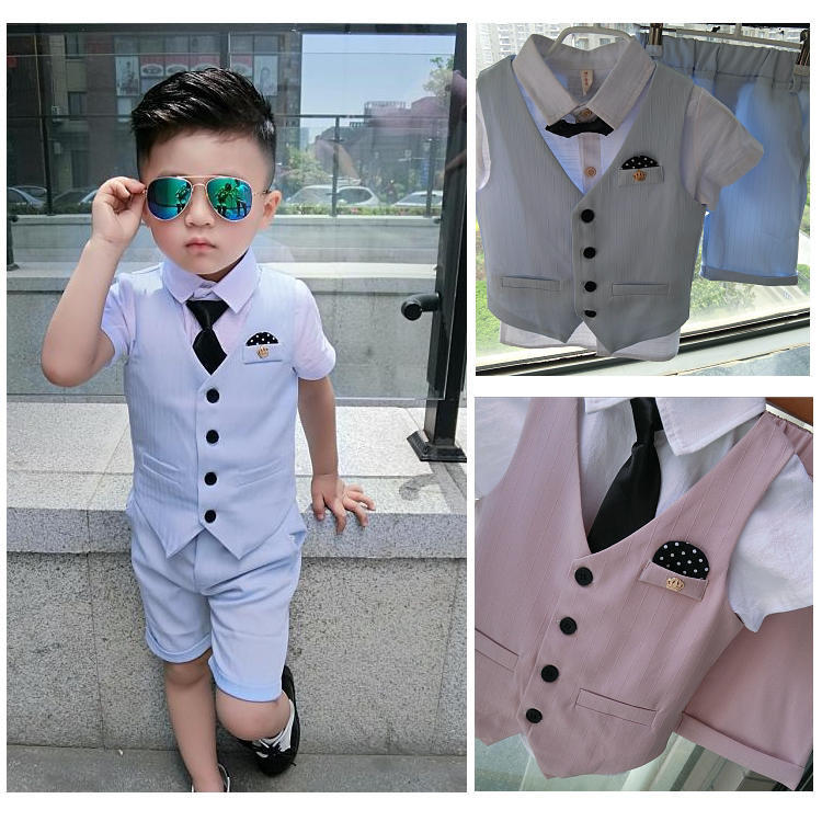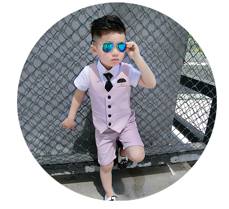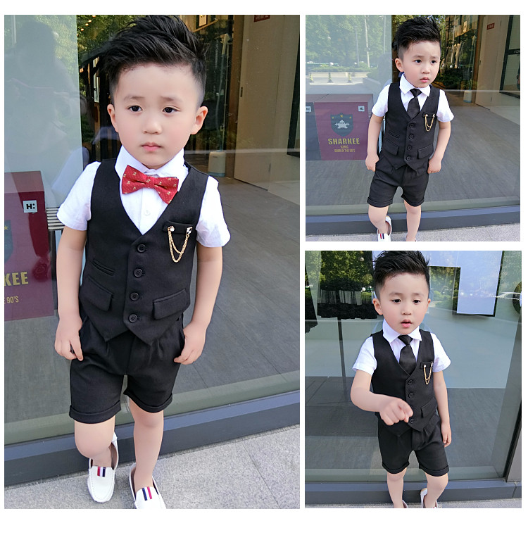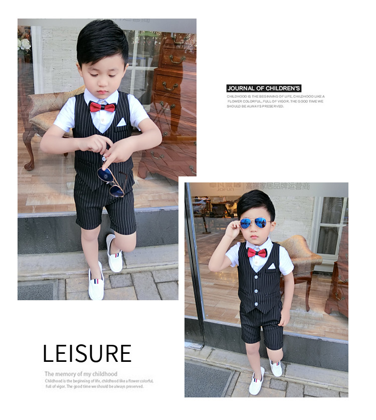 Жилет для мальчиков, платье, комплект, летний детский пиджак классического кроя, короткий рукав