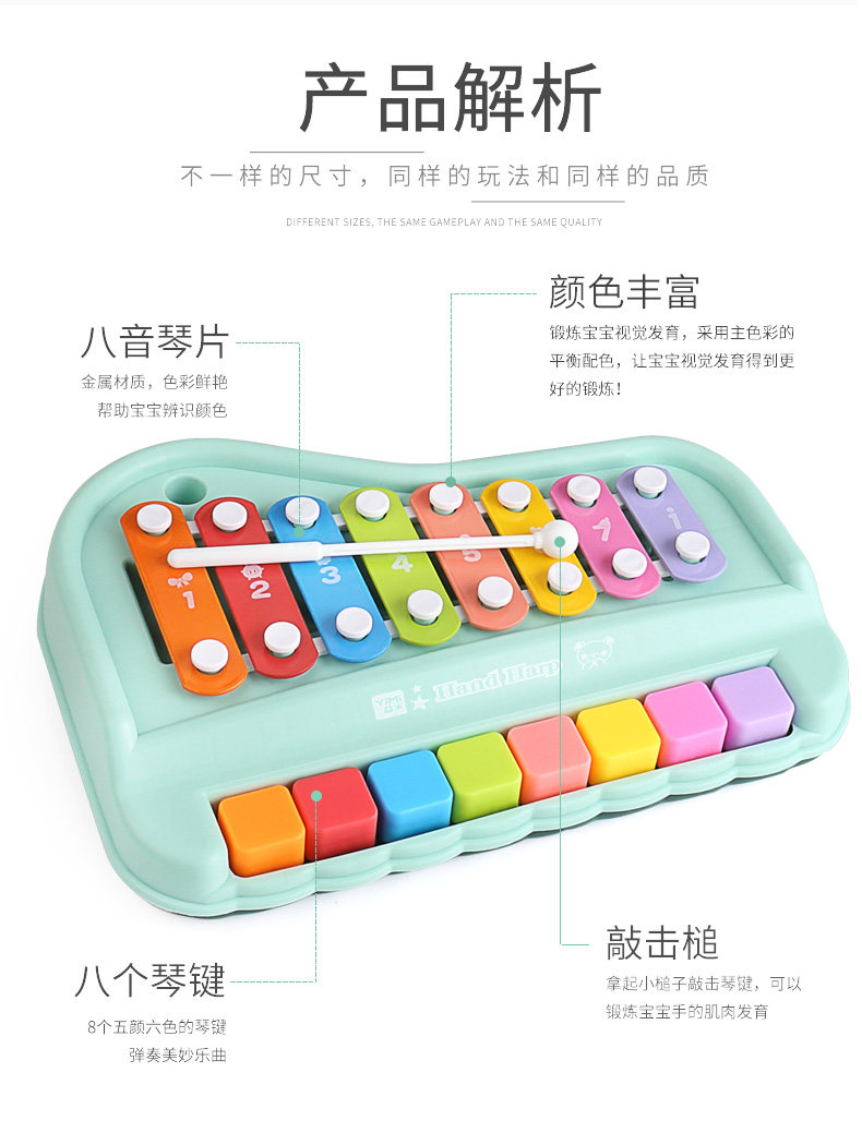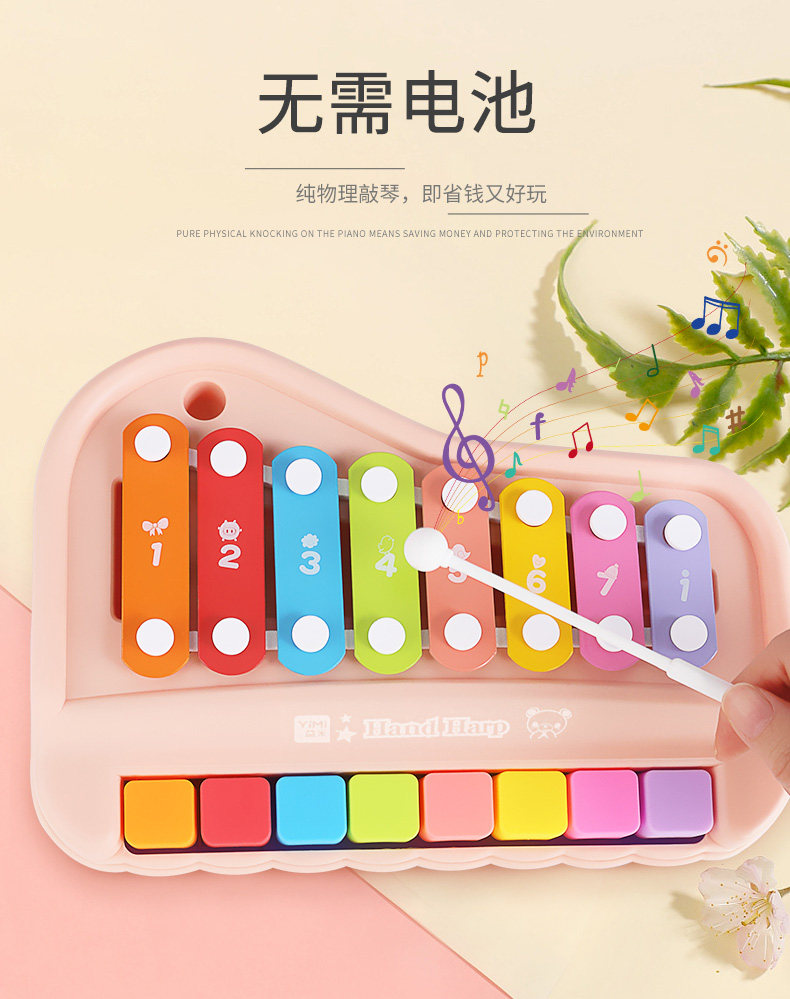Металлофон, музыкальные инструменты для младенца, музыкальная игрушка, пианино, 2 в 1, 8 мес.
