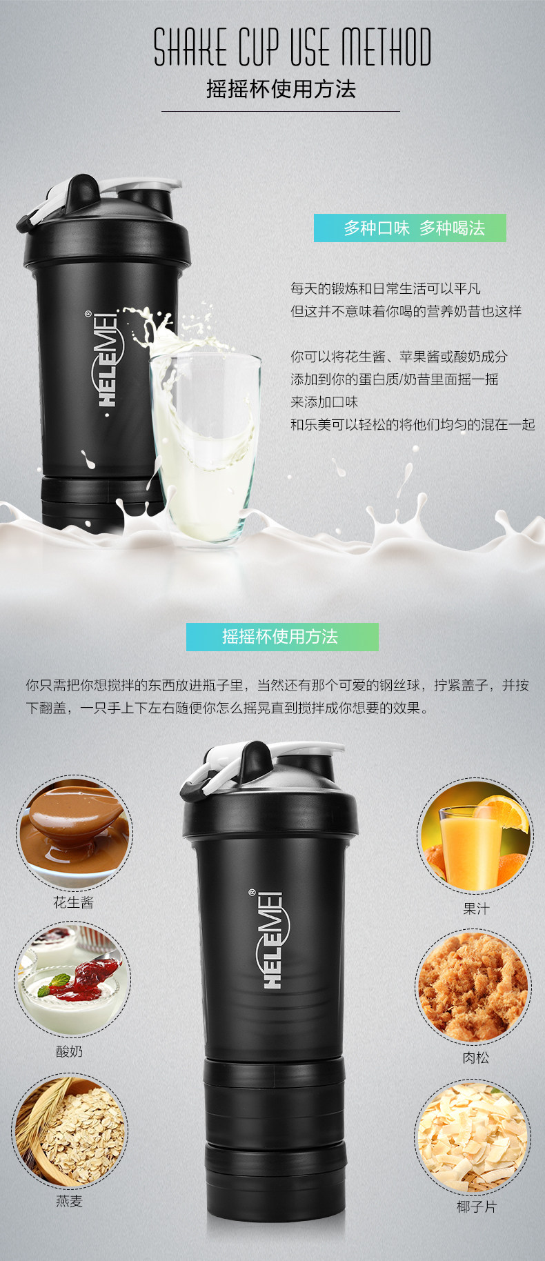 Качалка для спортзала, портативная спортивная бутылка, креативная палочка для смешивания со шкалой со стаканом