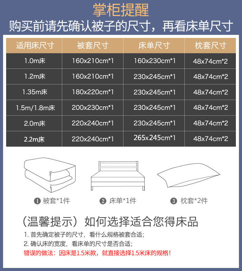 | Ширина кровати: | Пододеяльник, простыня, наволочка, 1.0м, 160×210см, 160×230см, Пододеяльник, простыня, наволочка, 1.2м, 160×210см, 230×245см, Пододеяльник, простыня, наволочка, 180×220см, 230×245см, Пододеяльник, простыня, наволочка, 1.5м, 200×230см, 230×245см, Пододеяльник, простыня, наволочка, 1.8м, 200×230см, 230×245см, Пододеяльник, простыня, наволочка, 2.0м, 220×240см, 230×245см, Пододеяльник, простыня, наволочка, 2.2м, 220×240см, 265×245см |