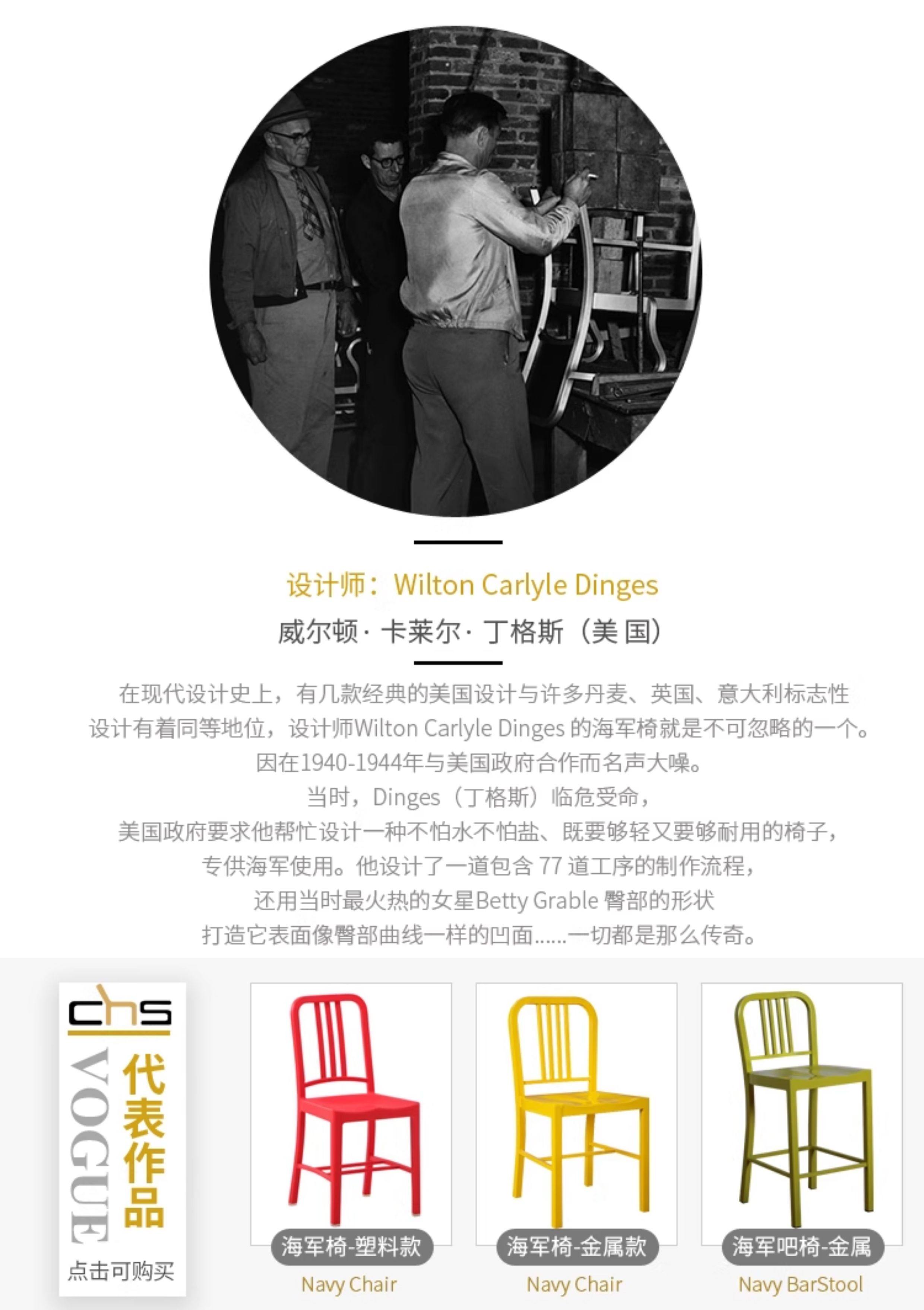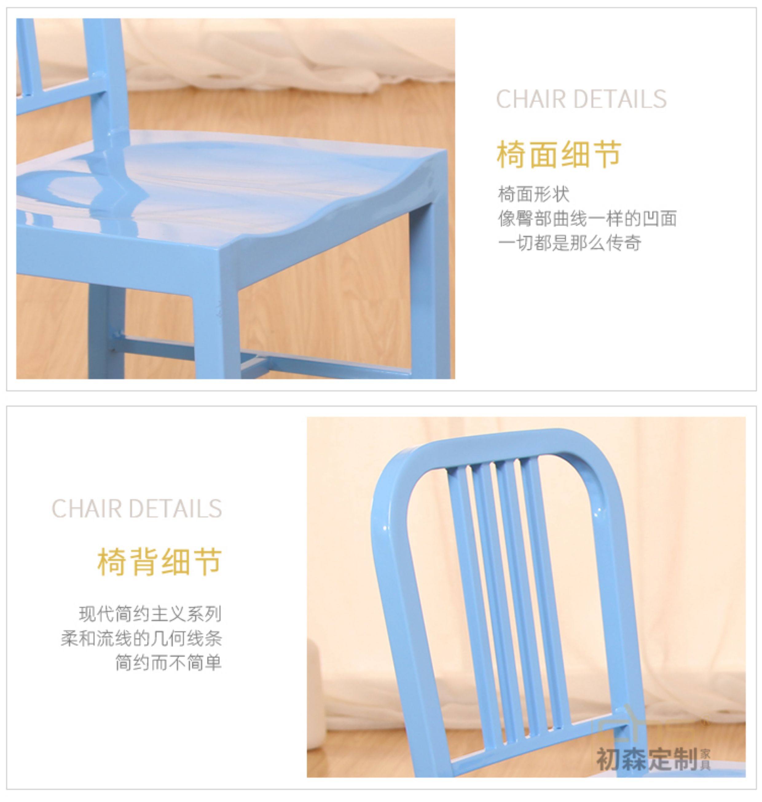 Чинсен дизайнерская мебель 111 морской стул военно -морской стул Простой железный металлический обеденный стул.