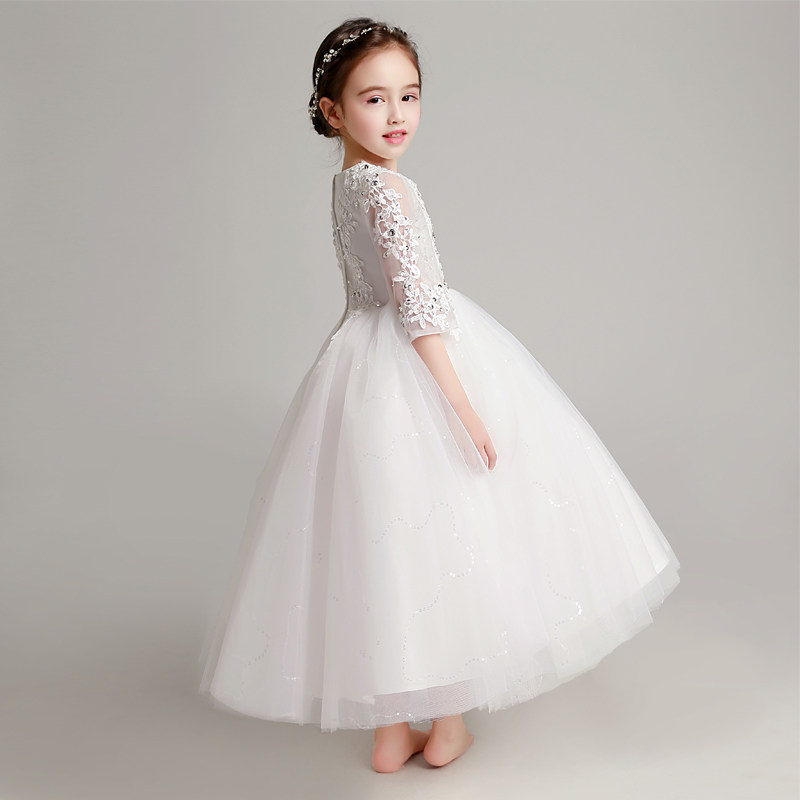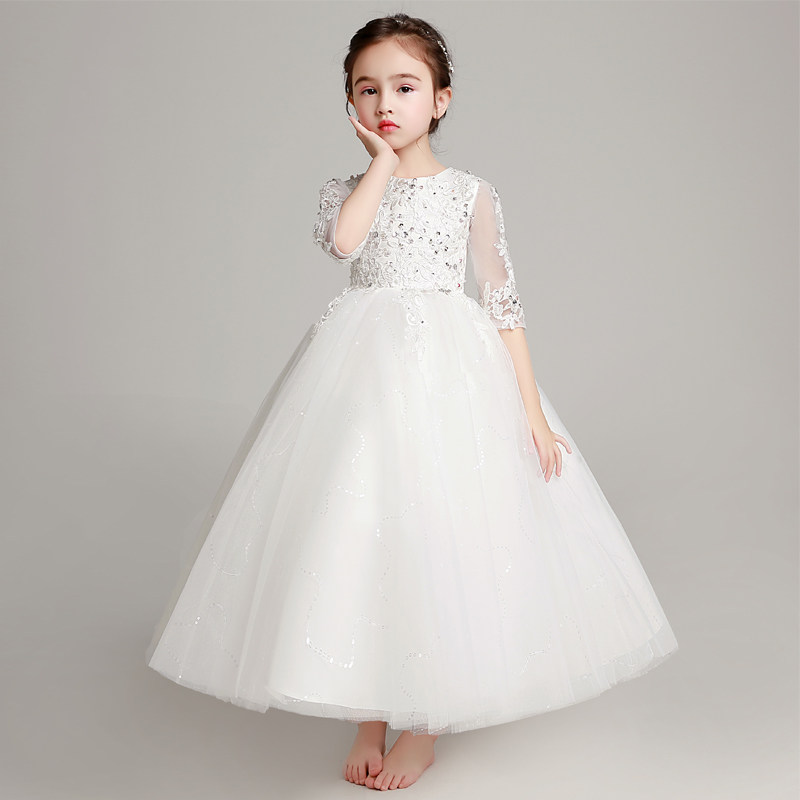 Наряд маленькой принцессы, наряд для музыкальных выступлений, вечернее платье, белое свадебное платье, благородный крой