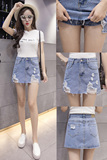 Джинсовая юбка, штаны, коллекция 2021, высокая талия, А-силуэт, с акцентом на бедрах