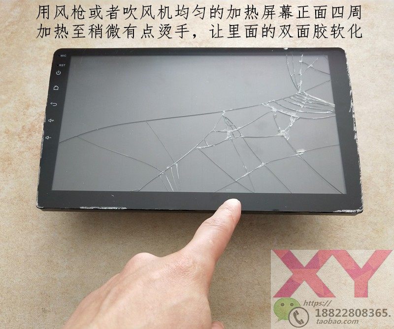 Затем используйте фен [вздуть волосы] к передней части экрана и удалите сенсорный экран ножом.Полем
