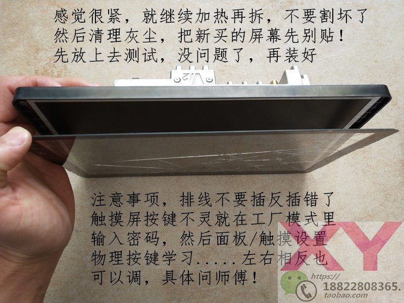 В конце концов, вставлены, положите верхнюю часть сенсорного экрана, не отрывайте клей, не тормозите, сначала не тестируйте, без проблем, затем протрите пыль, приклейте его, выравнивайте, приклейте за раз, не придерживайтесь ее !