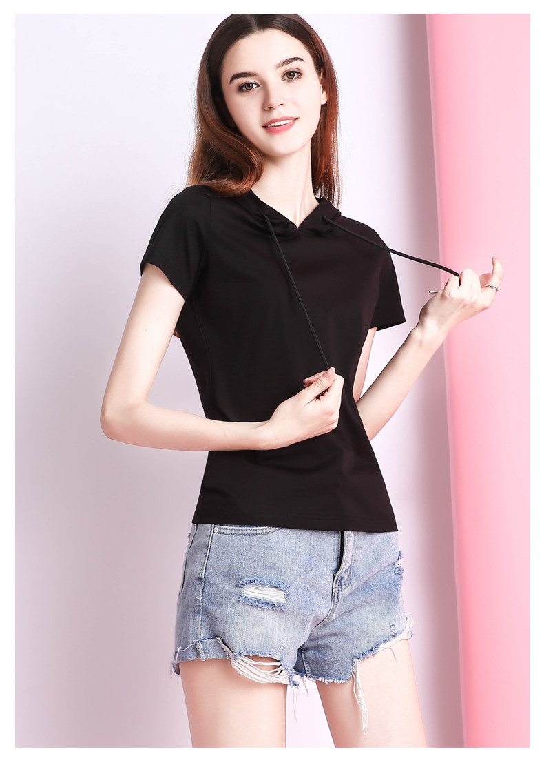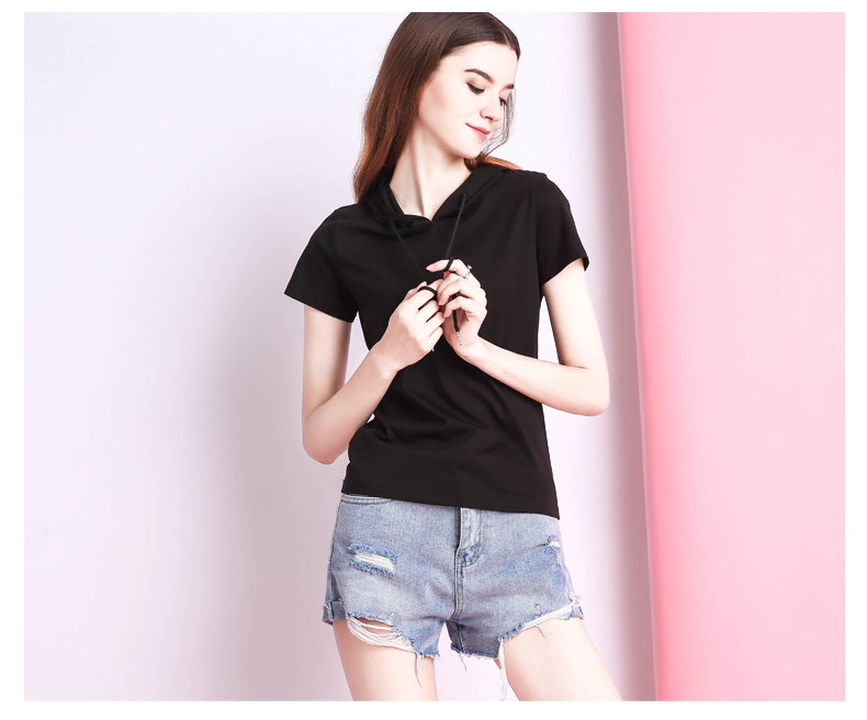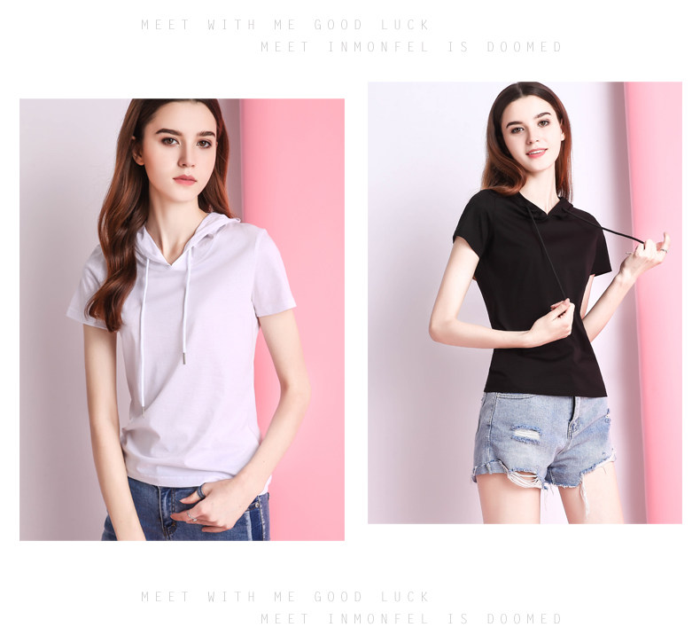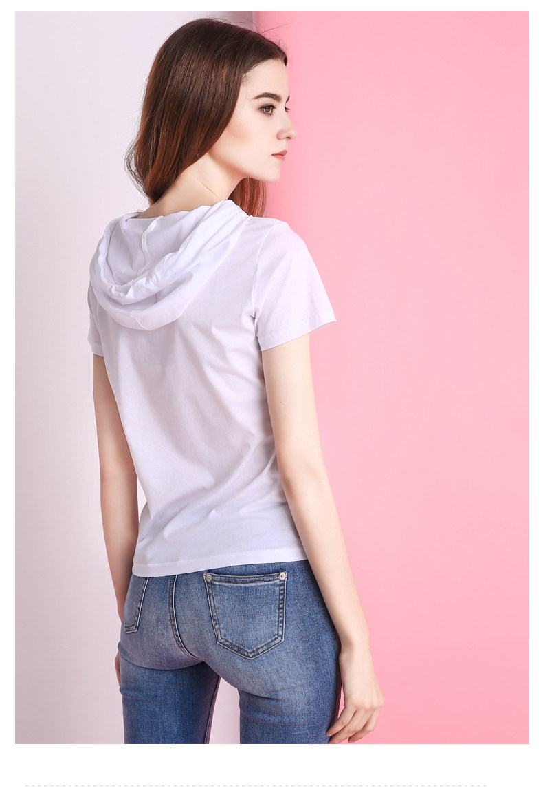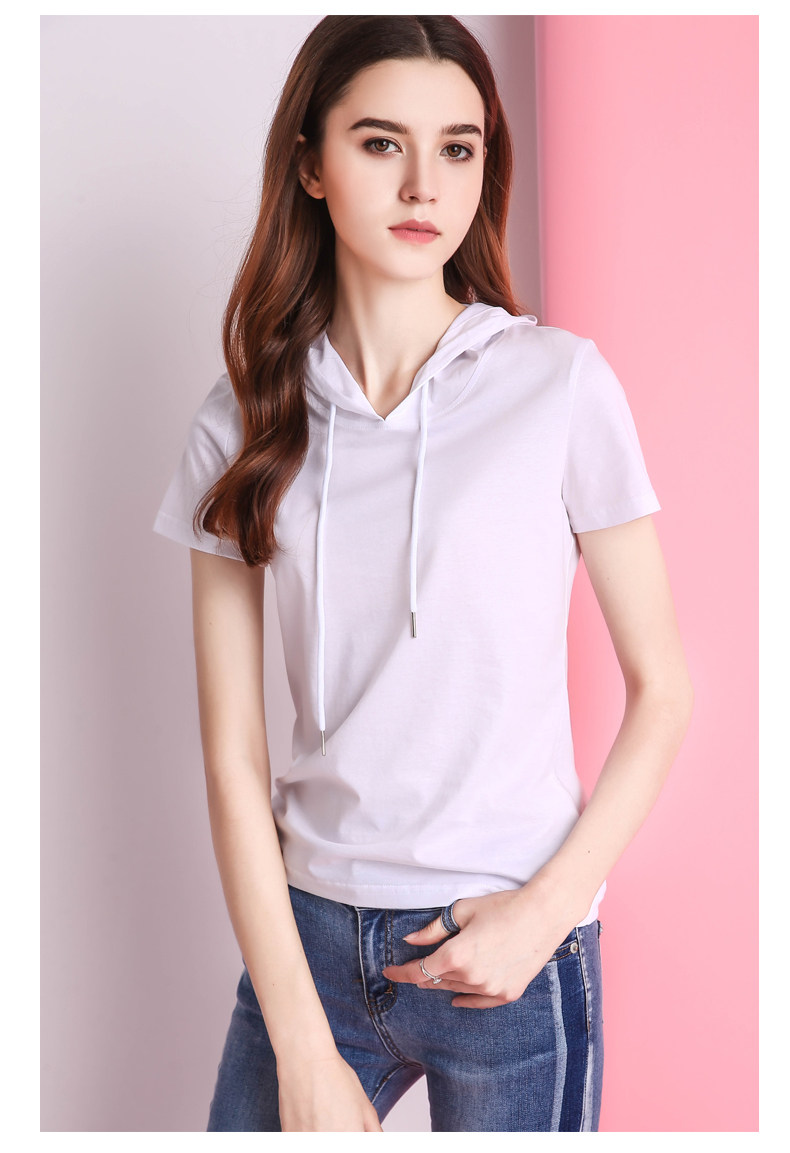 Белая летняя одежда, хлопковая базовая приятная телу футболка с капюшоном, короткий рукав, облегающий крой, популярно в интернете