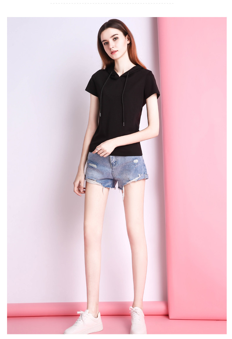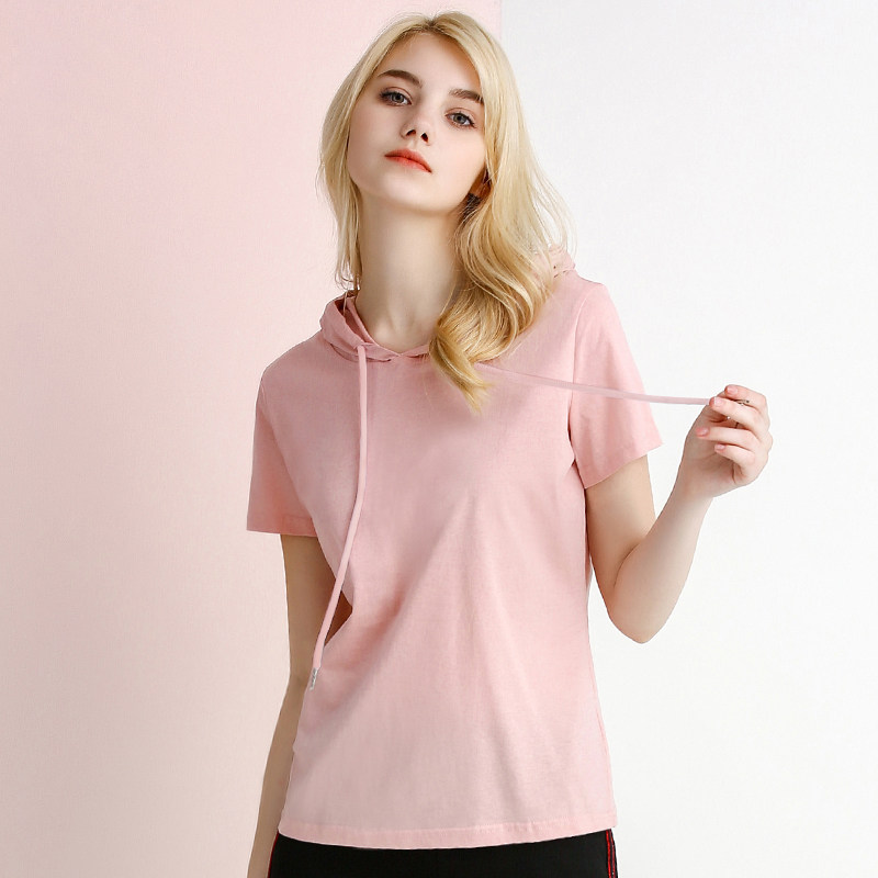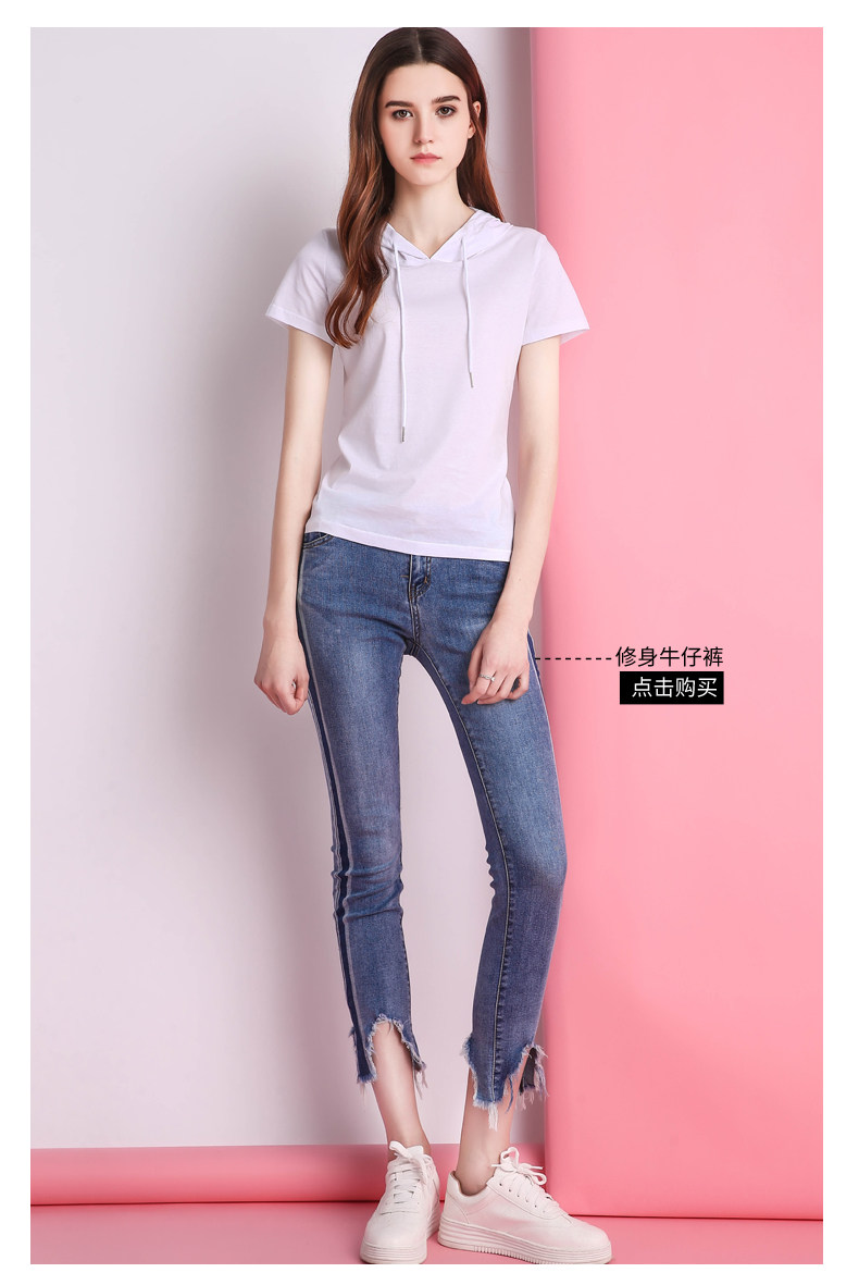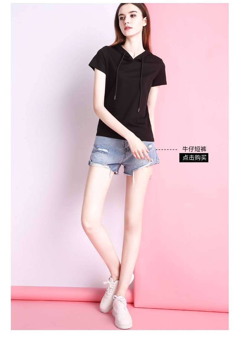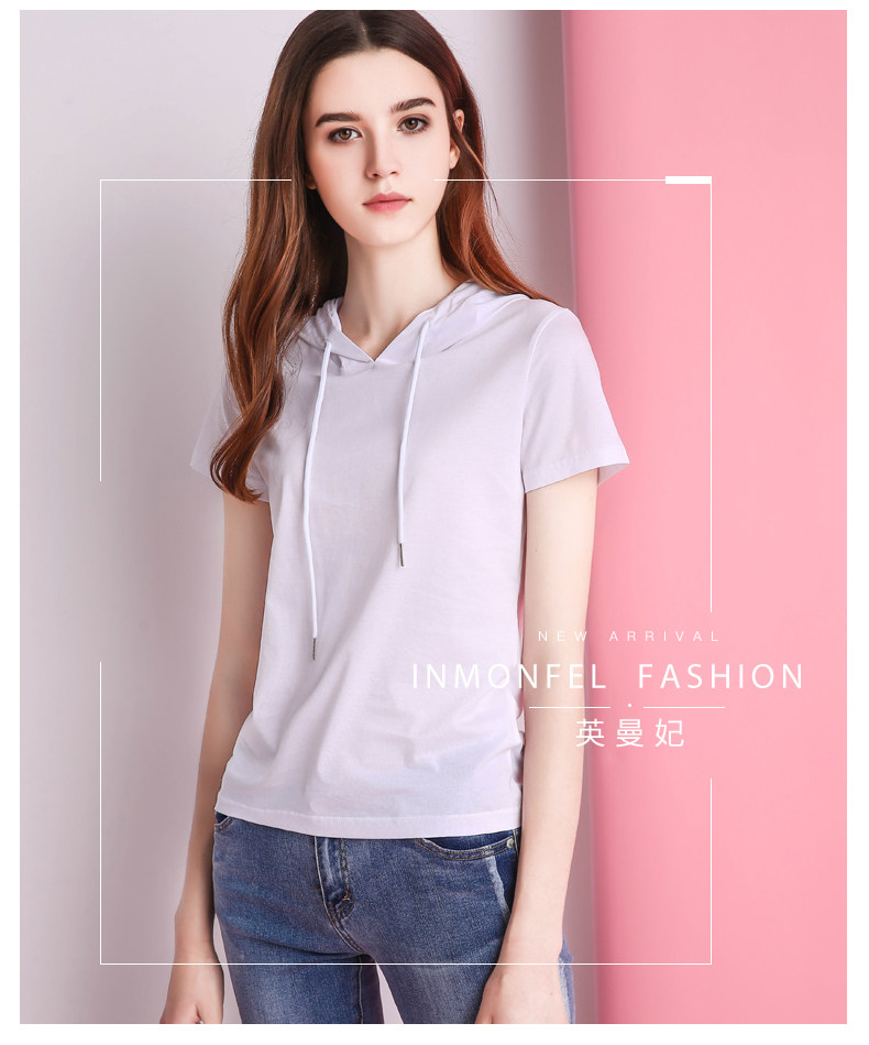 Белая летняя одежда, хлопковая базовая приятная телу футболка с капюшоном, короткий рукав, облегающий крой, популярно в интернете