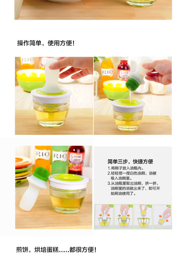 Масляная щетка домашняя домохозяйка с высокой температурой силиконовой масляной щеткой бутылка кухня блин пищевых -вырвана в пекарню в интегрированной масляной бутылке.
