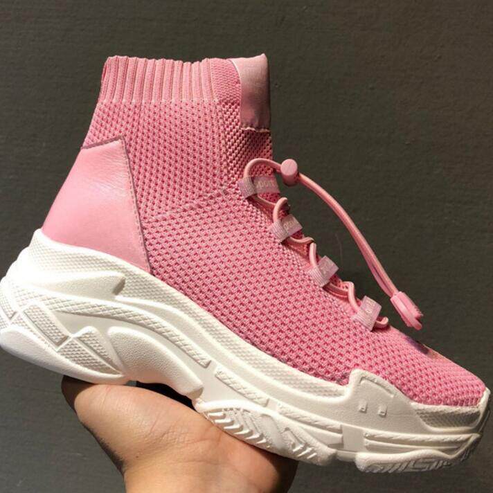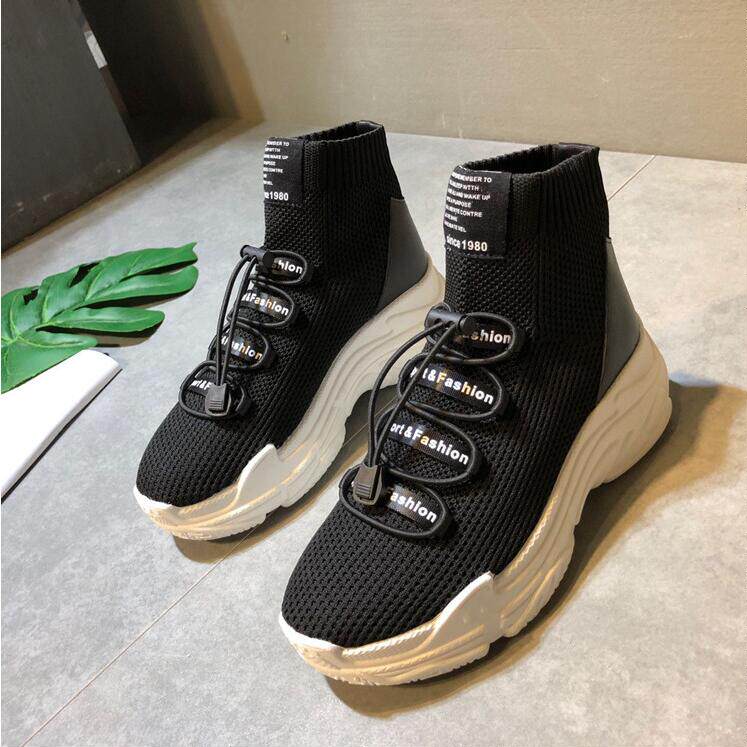 2022 Весна Невидимое увеличение в 8 см евро, корейский прилив, овчина, сшивая вязаная плетеная кружевная женская обувь 5953K