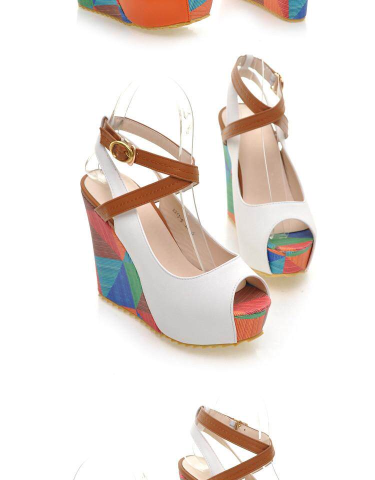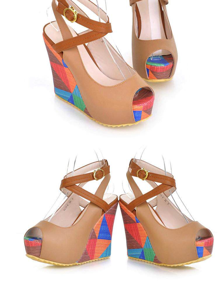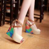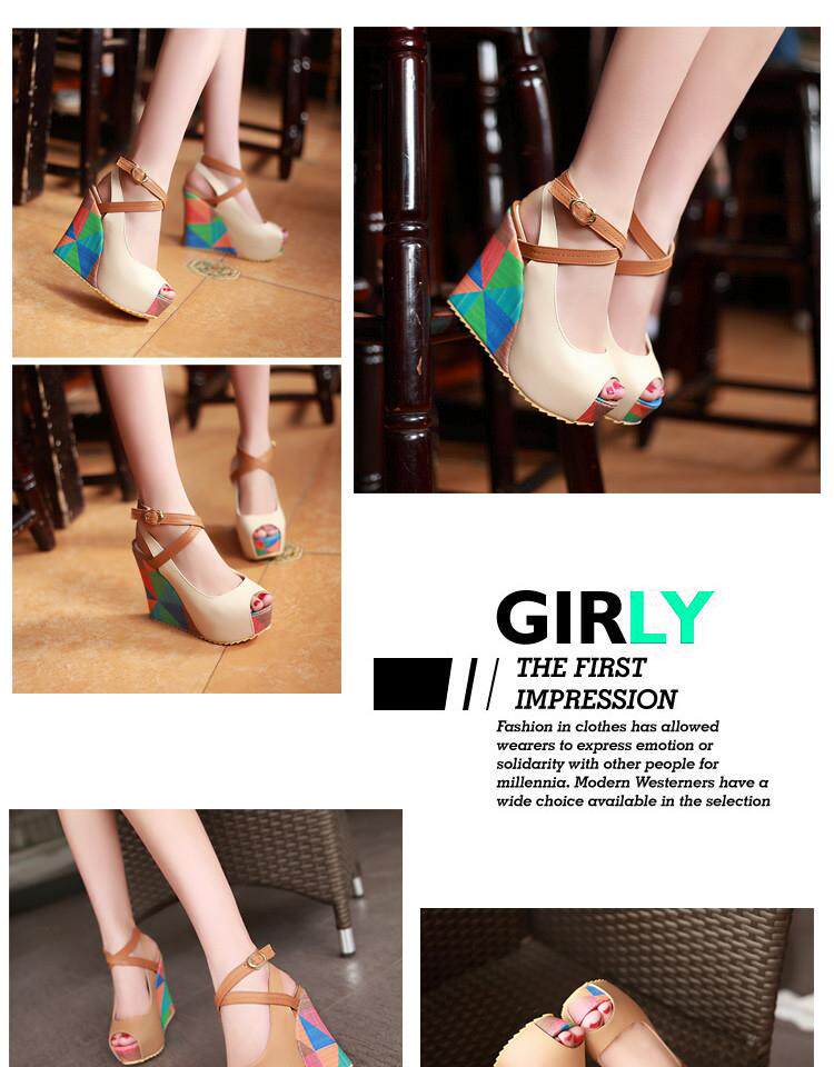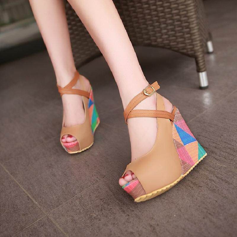 2018 новые сандалии на танкетке, женские летние непромокаемые туфли на толстой подошве и платформе с перекрестными ремешками на высоком каблуке «рыбий рот» в тон, студенческие римские туфли