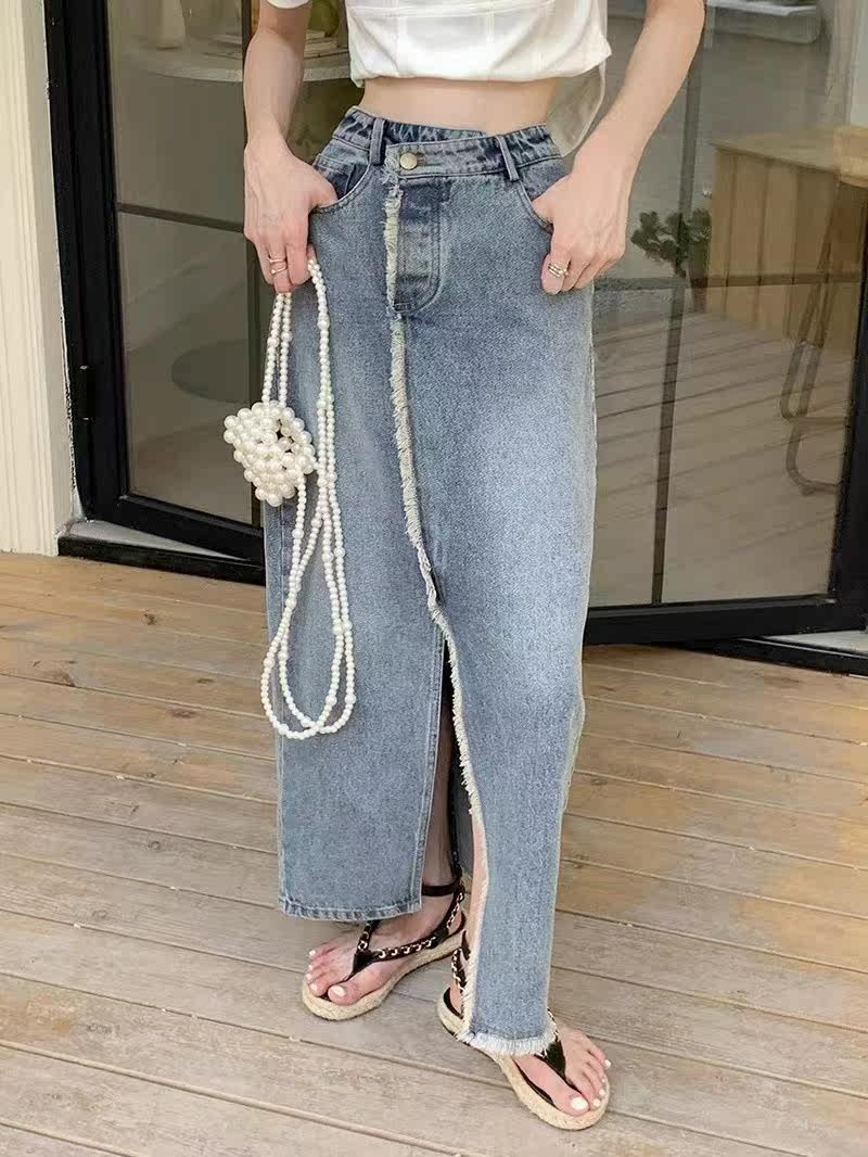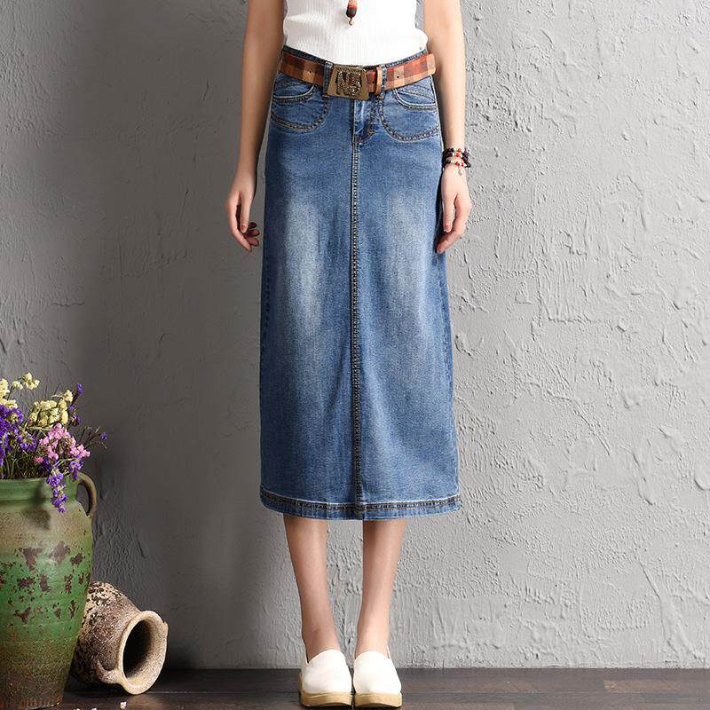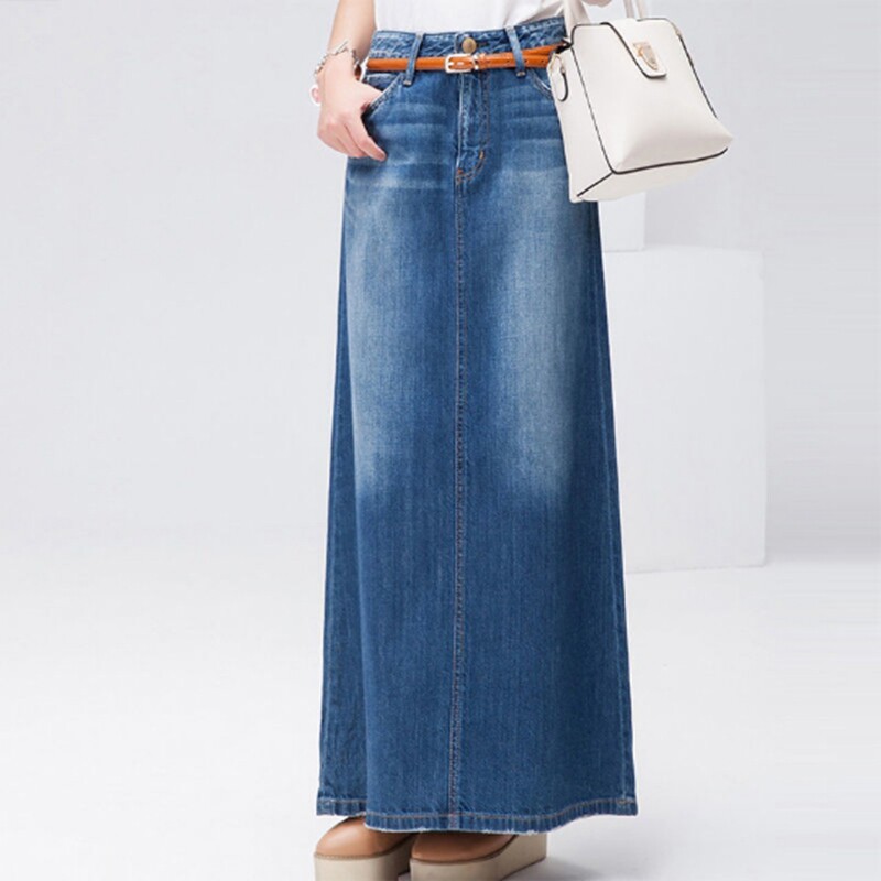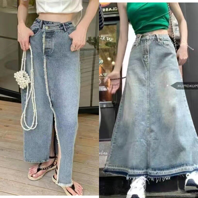 (Трансграничная торговля), милая джинсовая юбка в складку, длинная юбка, тренд сезона, плиссированная юбка, средней длины