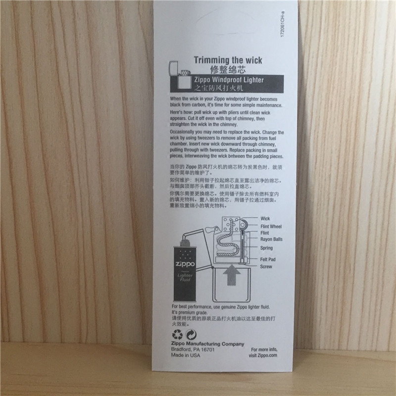 Оригинальный подлинный Zippo более легкие подлинные аксессуары Zippo более легкое хлопковое движение Zippo Хлопта
