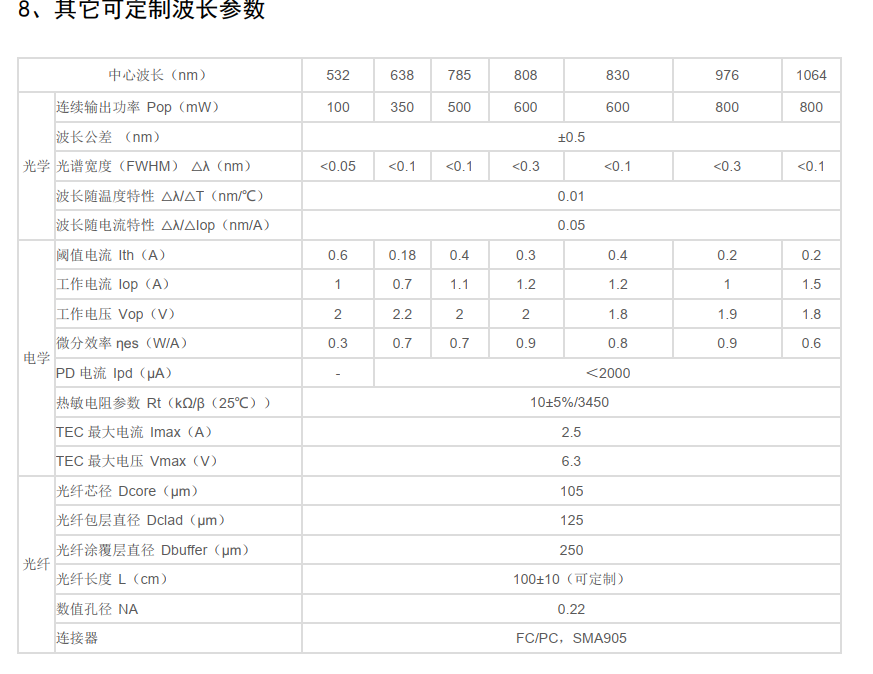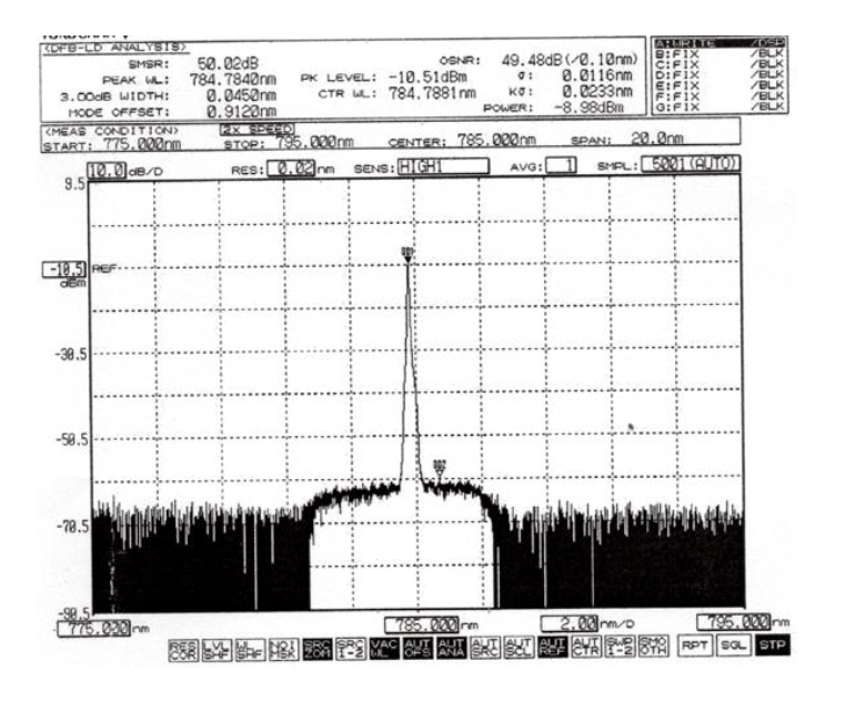 Волоконный лазер высокой мощности 785 нм, 600 мВт, узкая ширина линии, одна частота, спектр комбинационного рассеяния света
