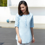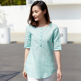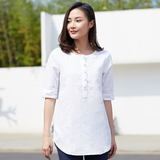 Ретро длинная рубашка, из хлопка и льна, средней длины