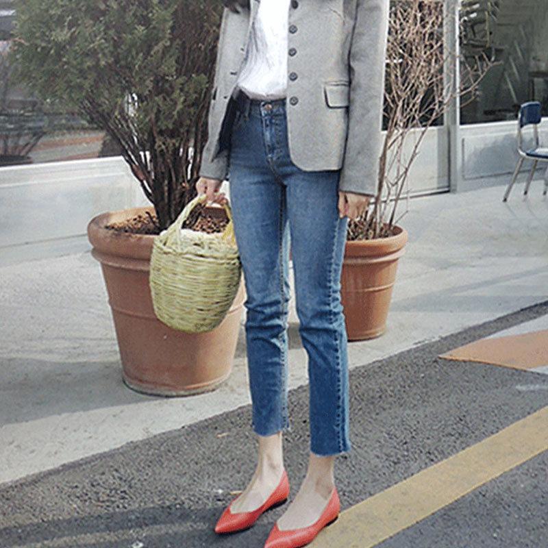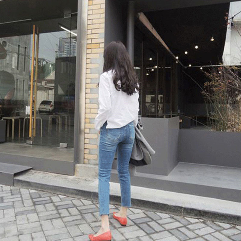 Весенние эластичные джинсовые приталенные штаны, подходит для полных девушек, высокая талия