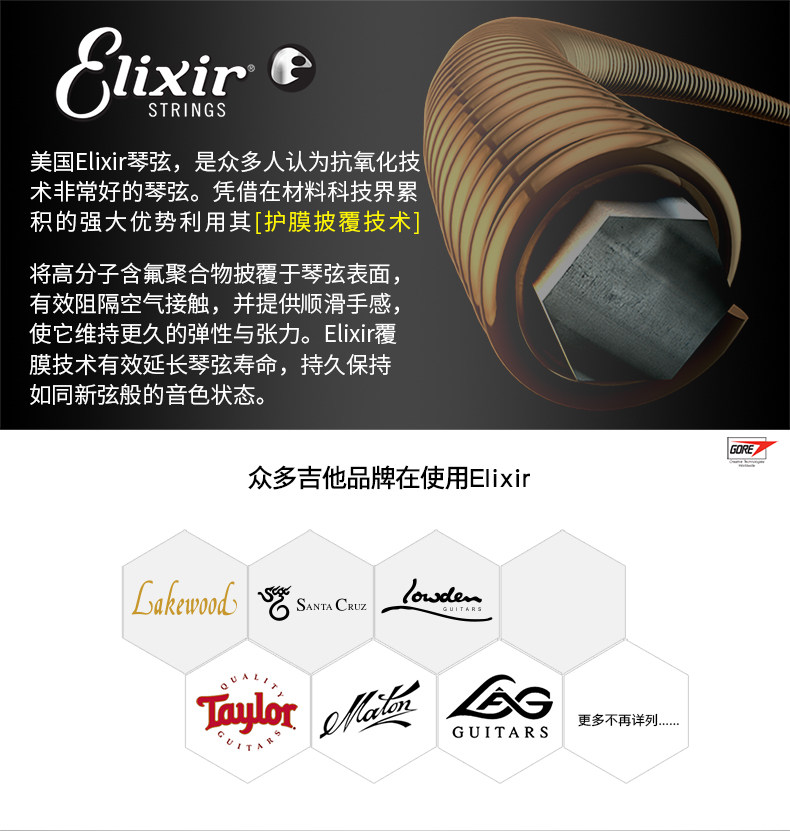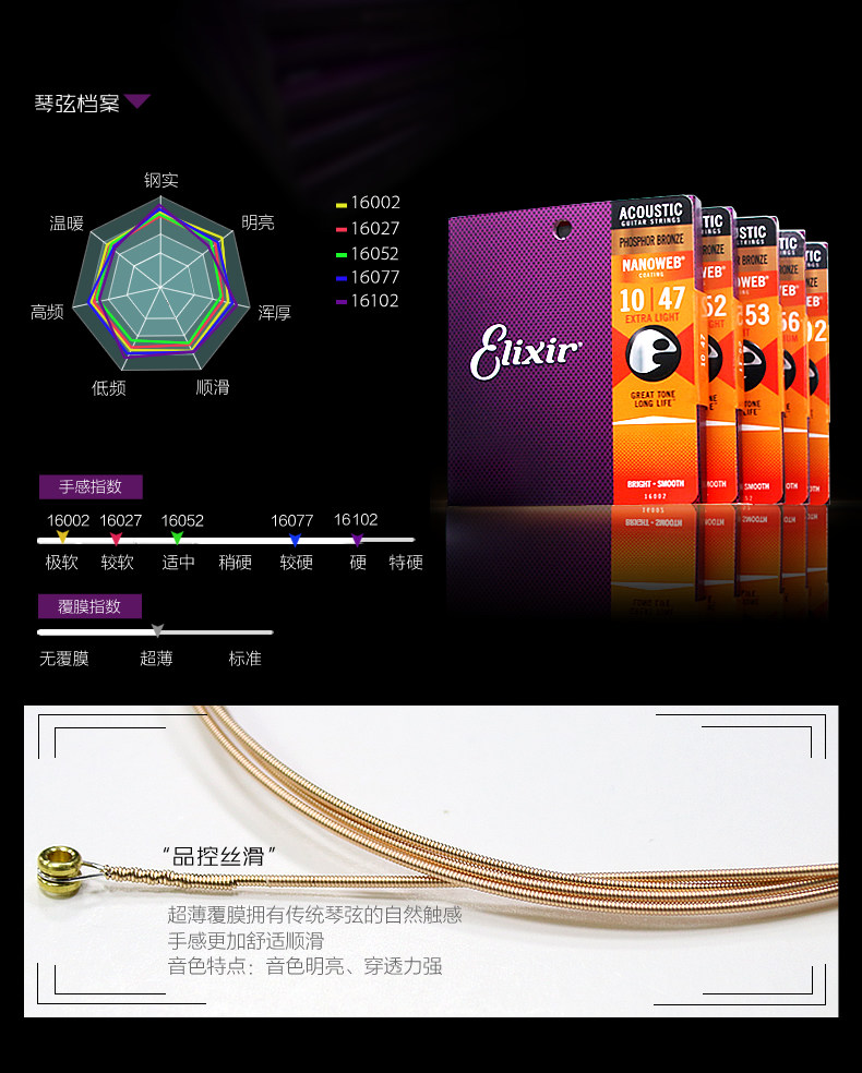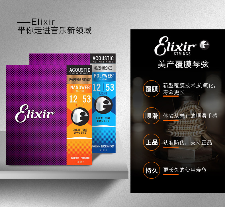 Эликсир 16052 16027 ILIX фортепианные струны Minzu Kuku Guitu rust -anti -glip слой.