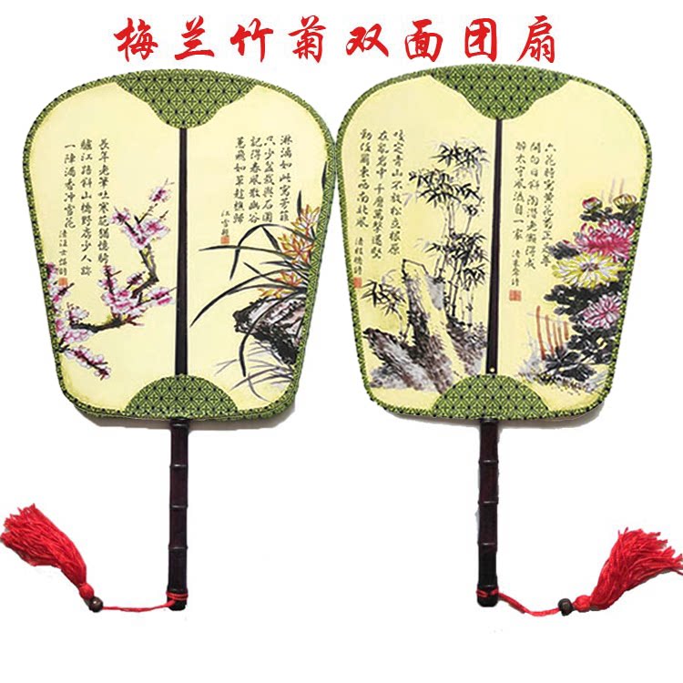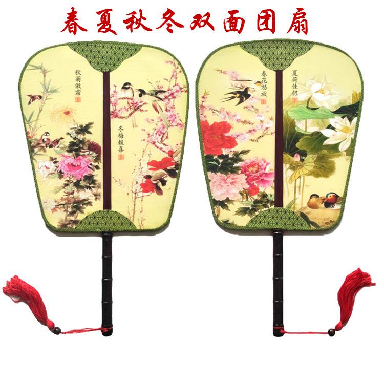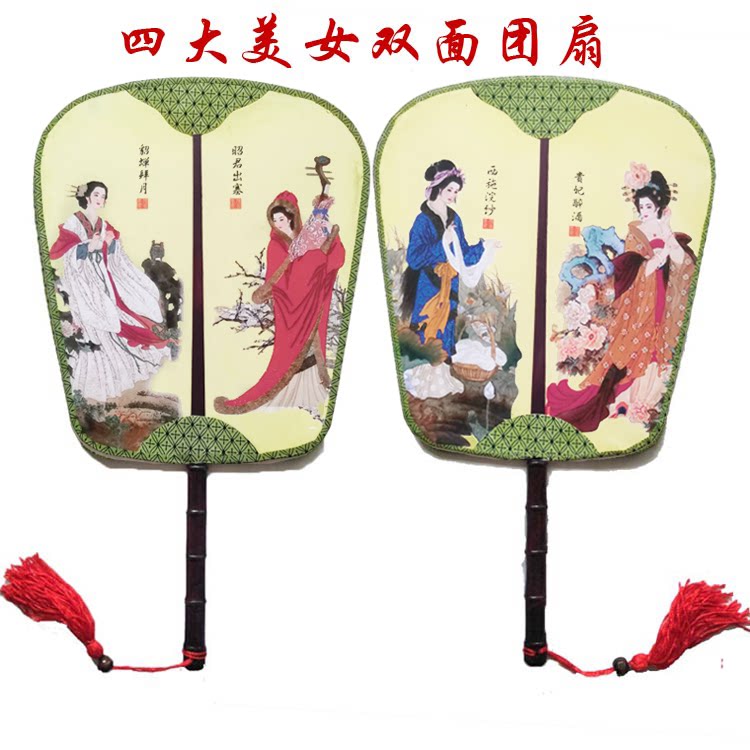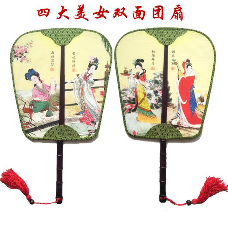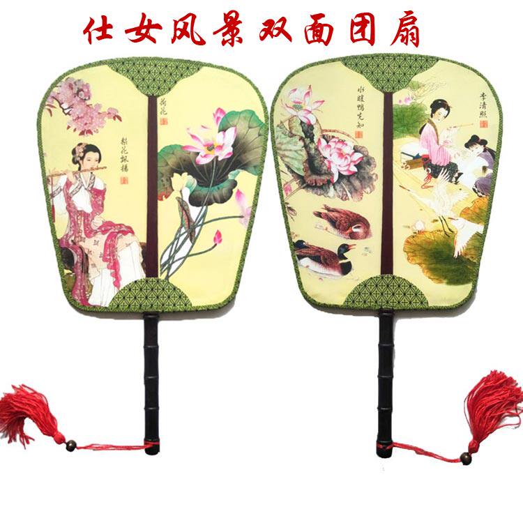 Настоящий шелк с двойным узором Palace Fan Group Fan Group в форме антикварного дворца фанат банановый фанат группы четыре прекрасных женщин