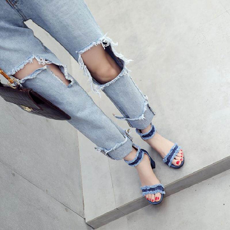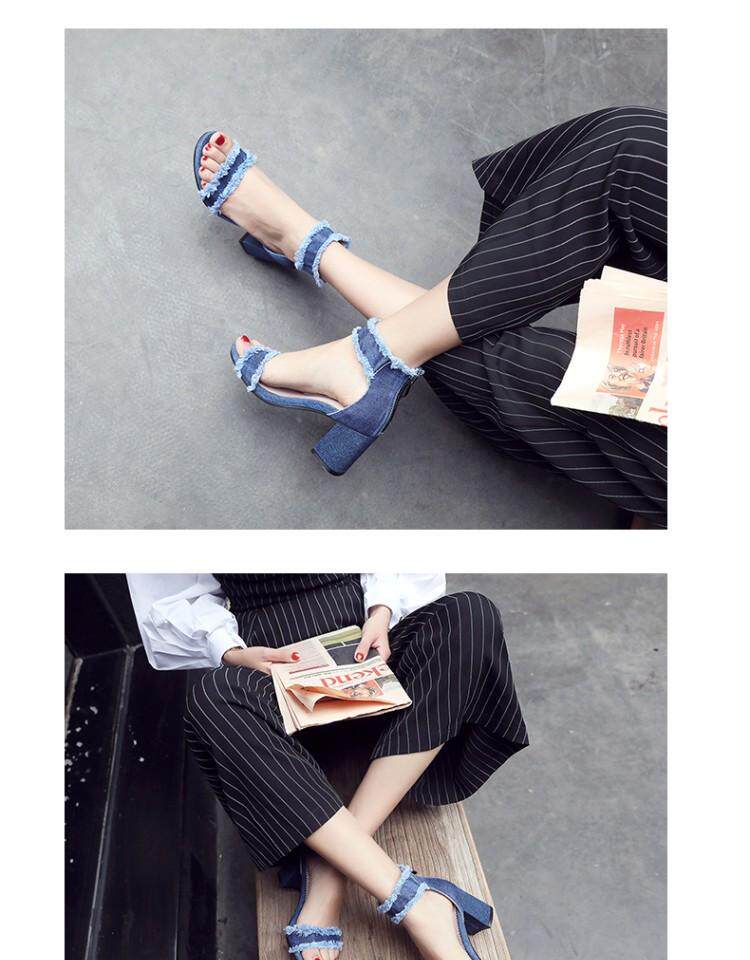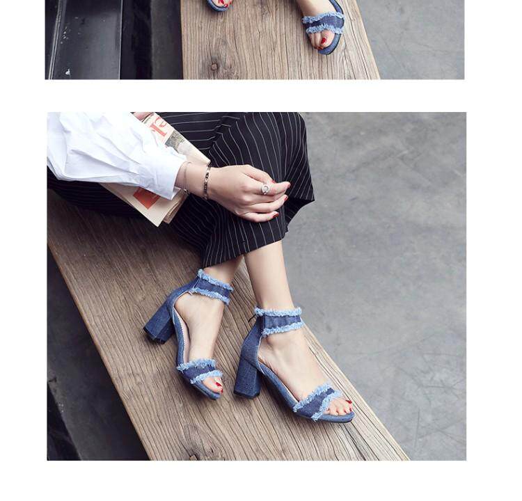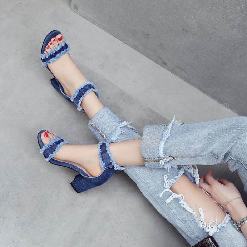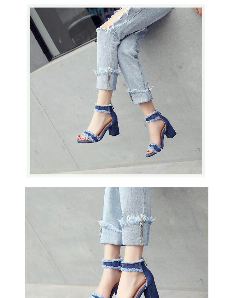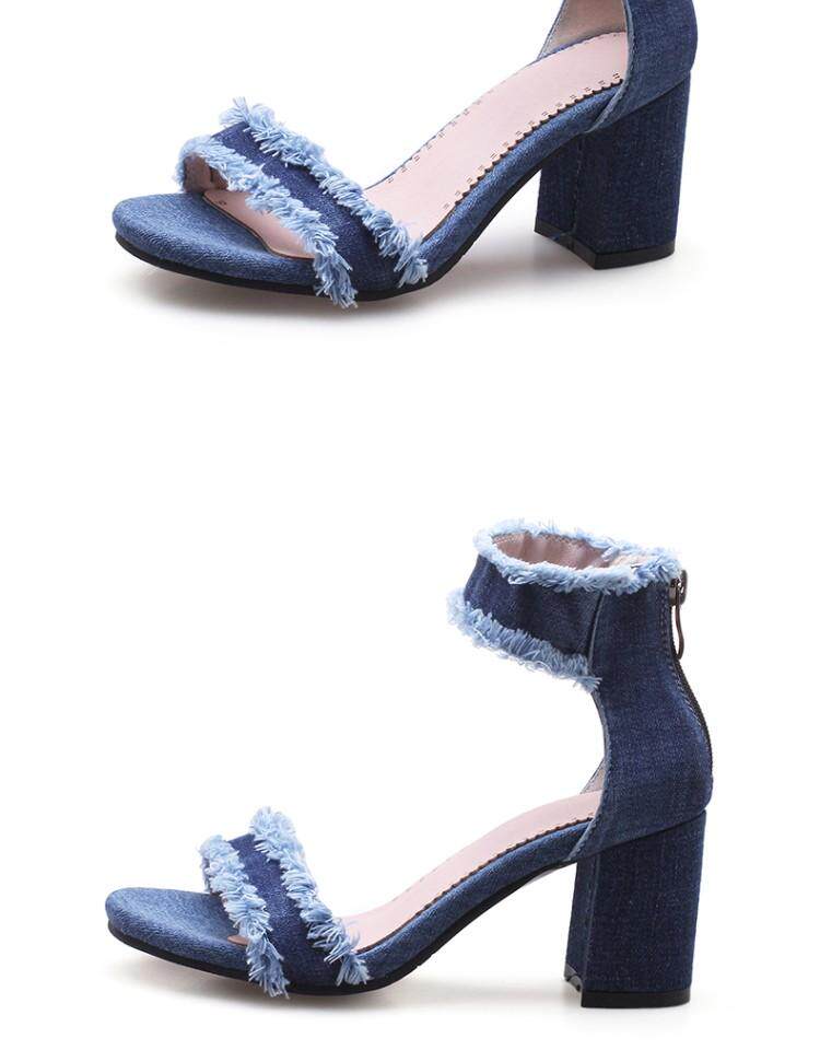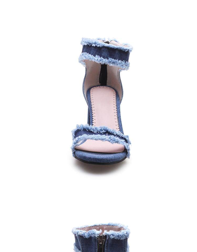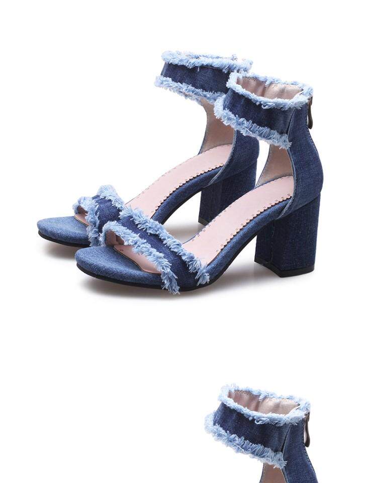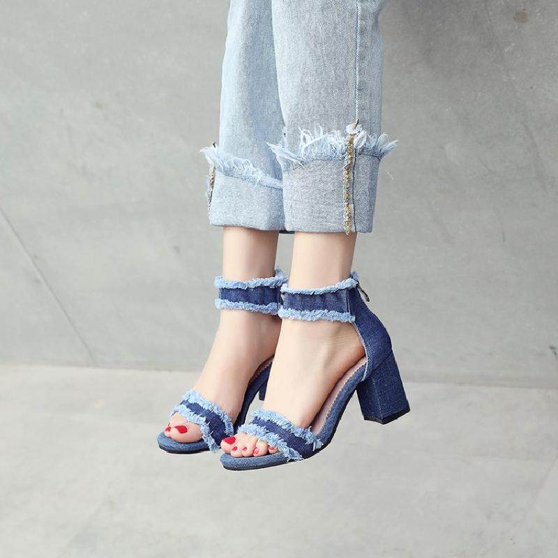 Джинсовые летние модные босоножки с молнией, в корейском стиле, простой и элегантный дизайн