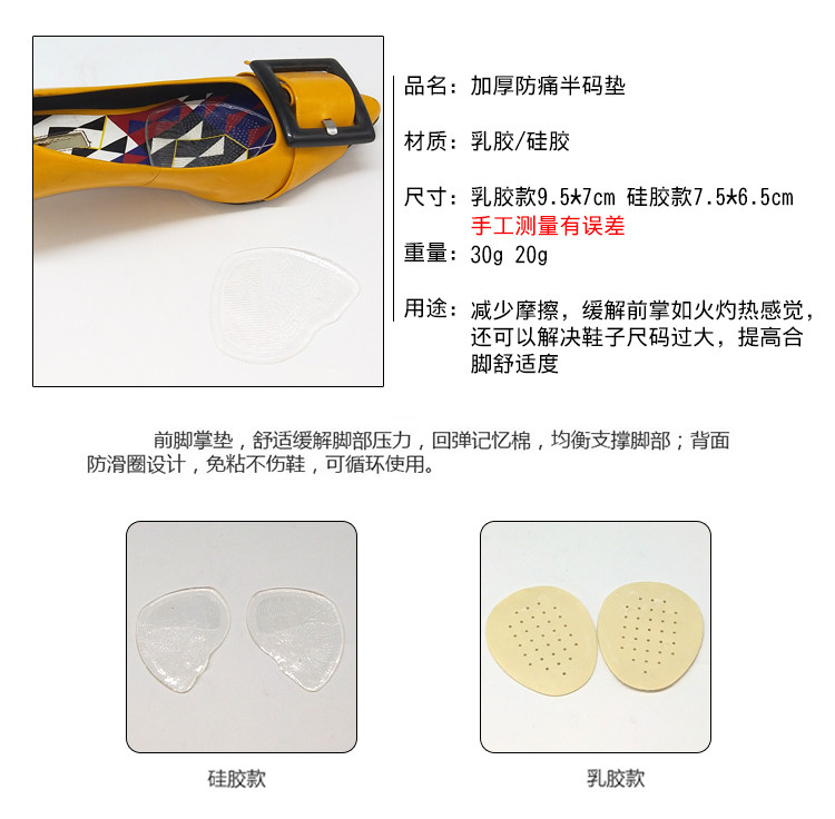 Силиконовые полустельки, нескользящие противоболевые латексные стельки