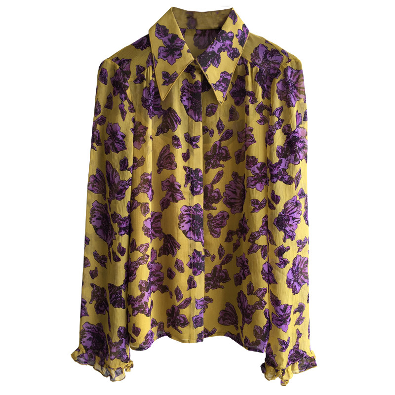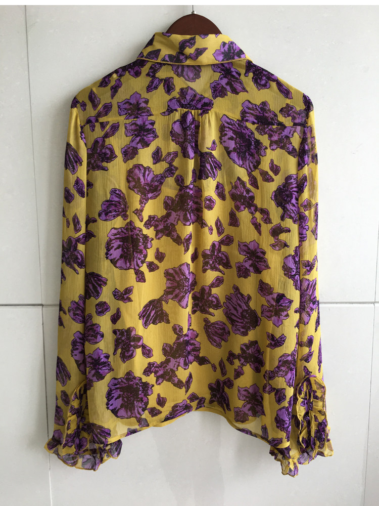 Особенный!Новый стиль дизайнерская женская одежда с персонализированным воротником с печеночным воротником маленький лотос листовой рукав с двумя частями рубашки с длинным рукавом 2031