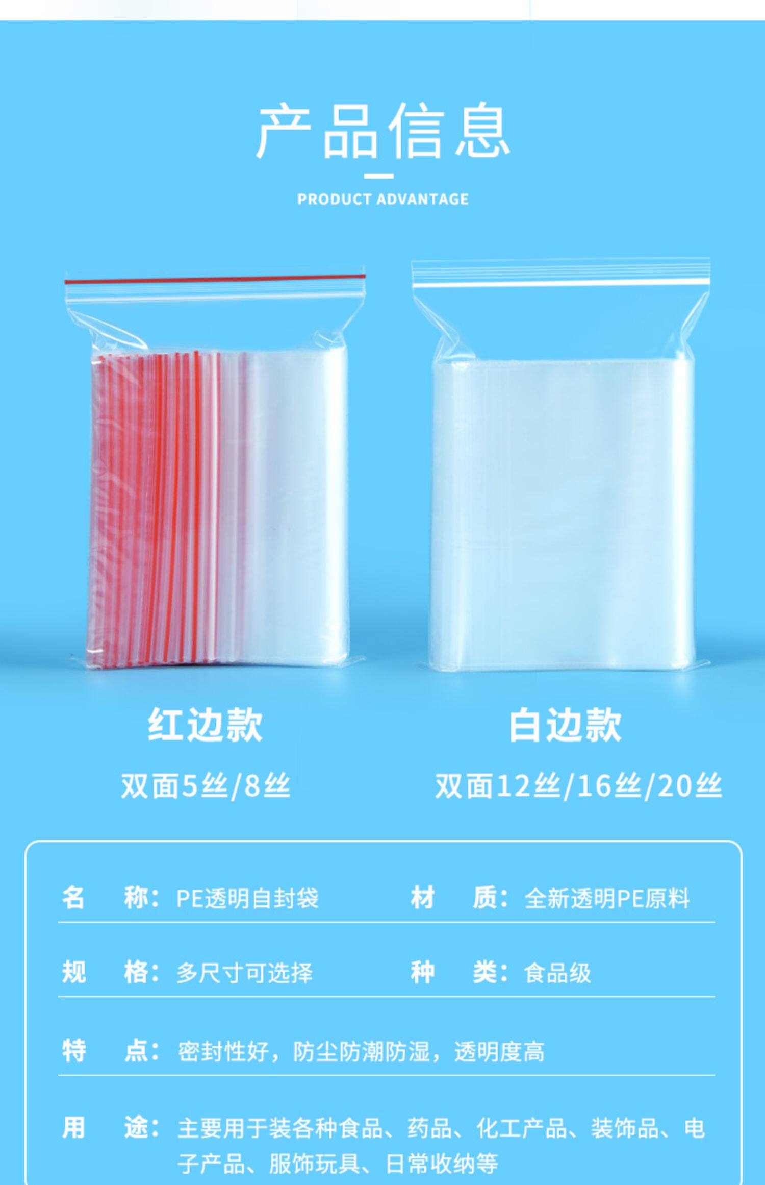 Прозрачный пластиковый герметичный мешок, маленькая тара, упаковка, увеличенная толщина