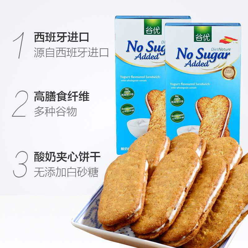 [Импорт] Gu Youyan Fan Fiber Cereal Food Biscuits (йогурт) 220G*2 коробки с закусочной сеткой красной