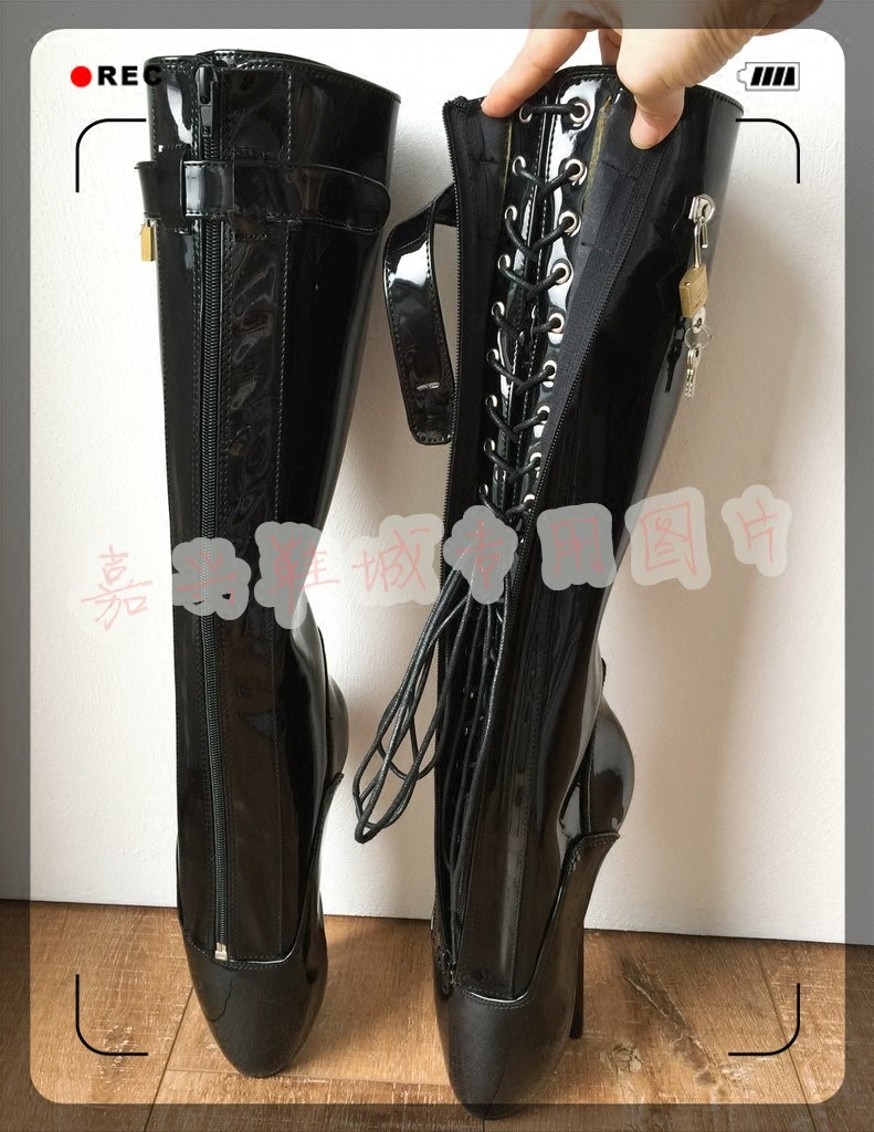 [Jiaxing Shoes City] Черный патентный кожаный рот с настоящим замком сексуальной богиня балет высокие ботинки женские ботинки BLZ1601