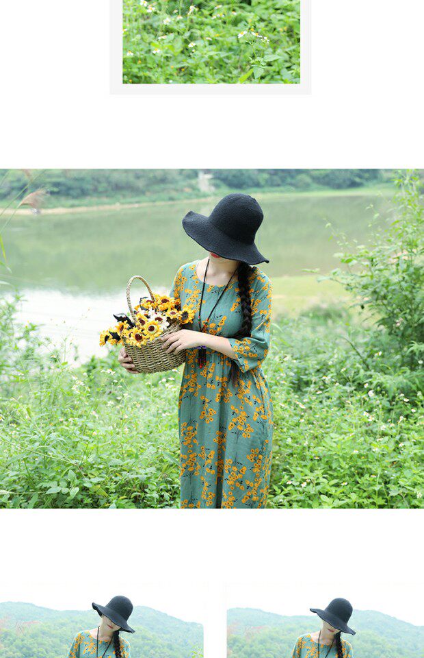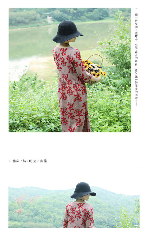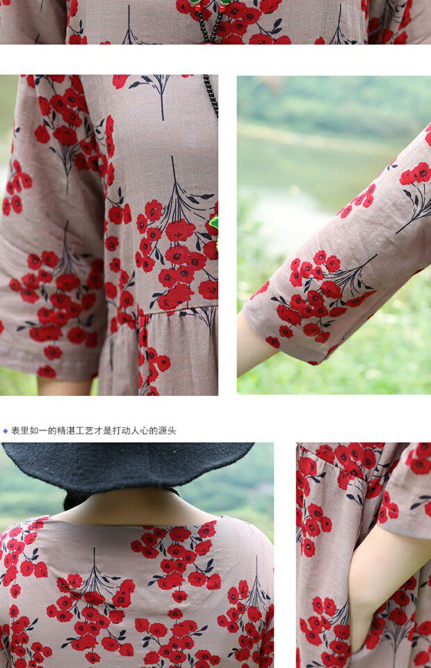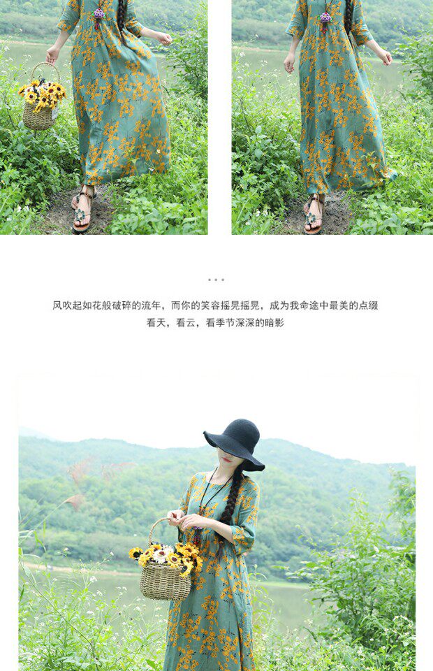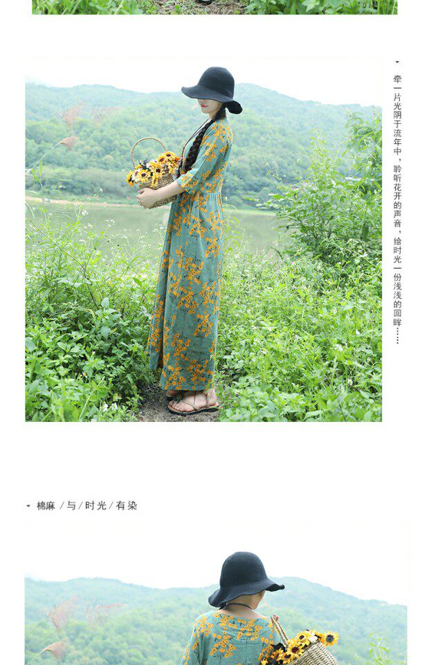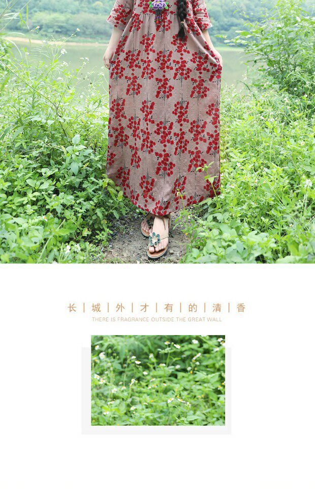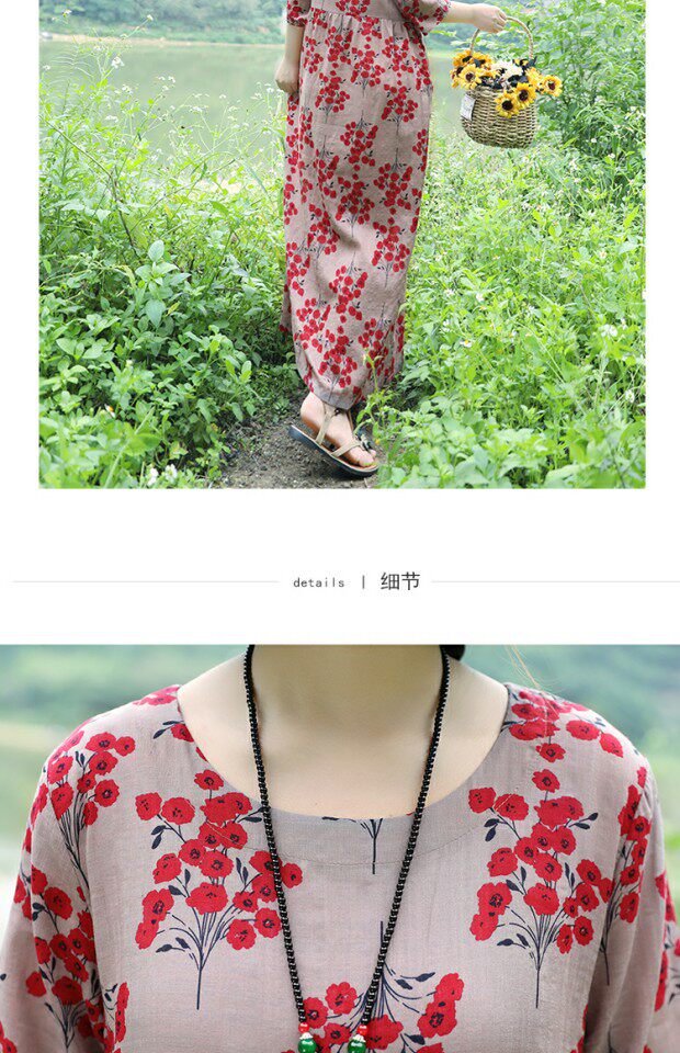 Этническая летняя одежда, платье, длинная юбка, этнический стиль, высокая талия, с рукавом, цветочный принт