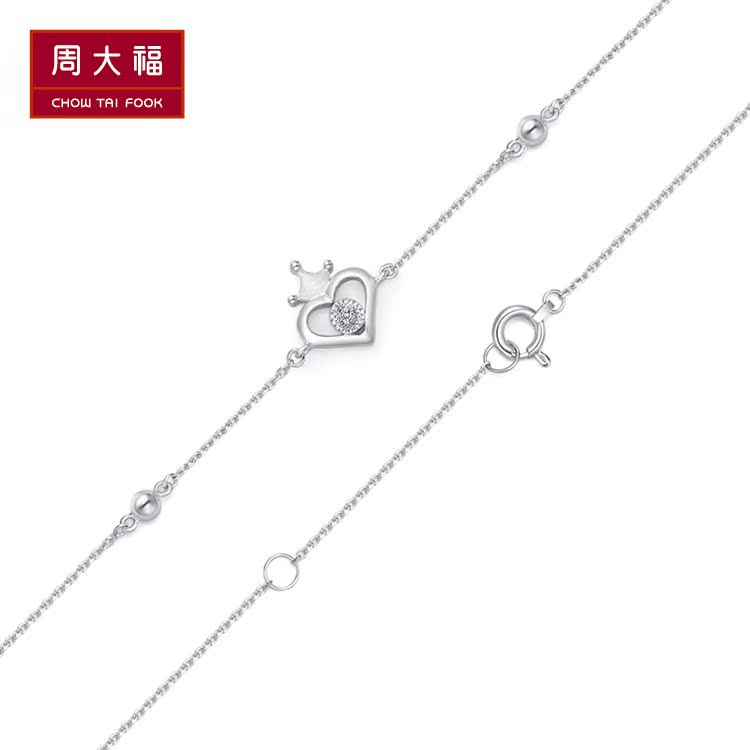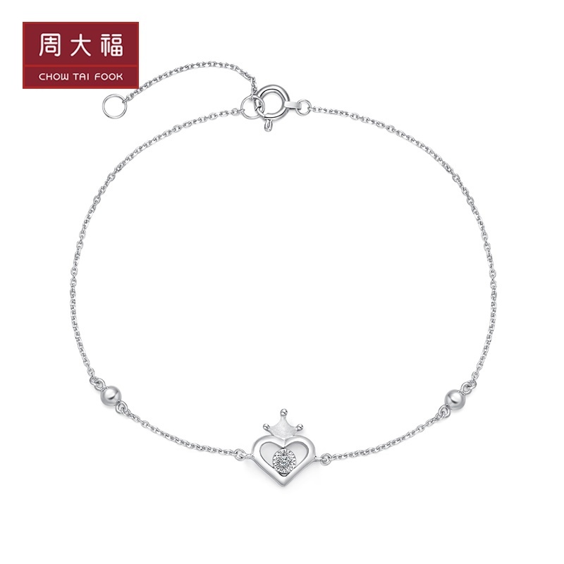 周大福 Pt G & amp; w Series L Heart -форма Crown Pt950 Платиновый бриллиантный браслет CP565