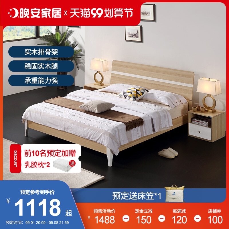 Спокойной ночи дома современная минималистская двуспальная кровать, сплошная деревянная кровать 1,8 м.