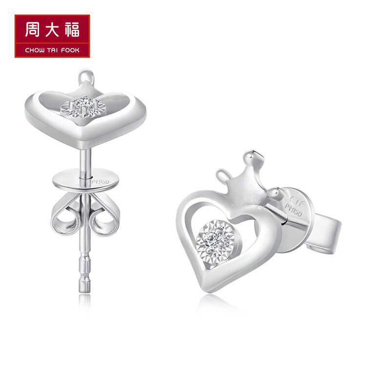 周大福 Платиновые серьги в форме сердца, платина 950 пробы