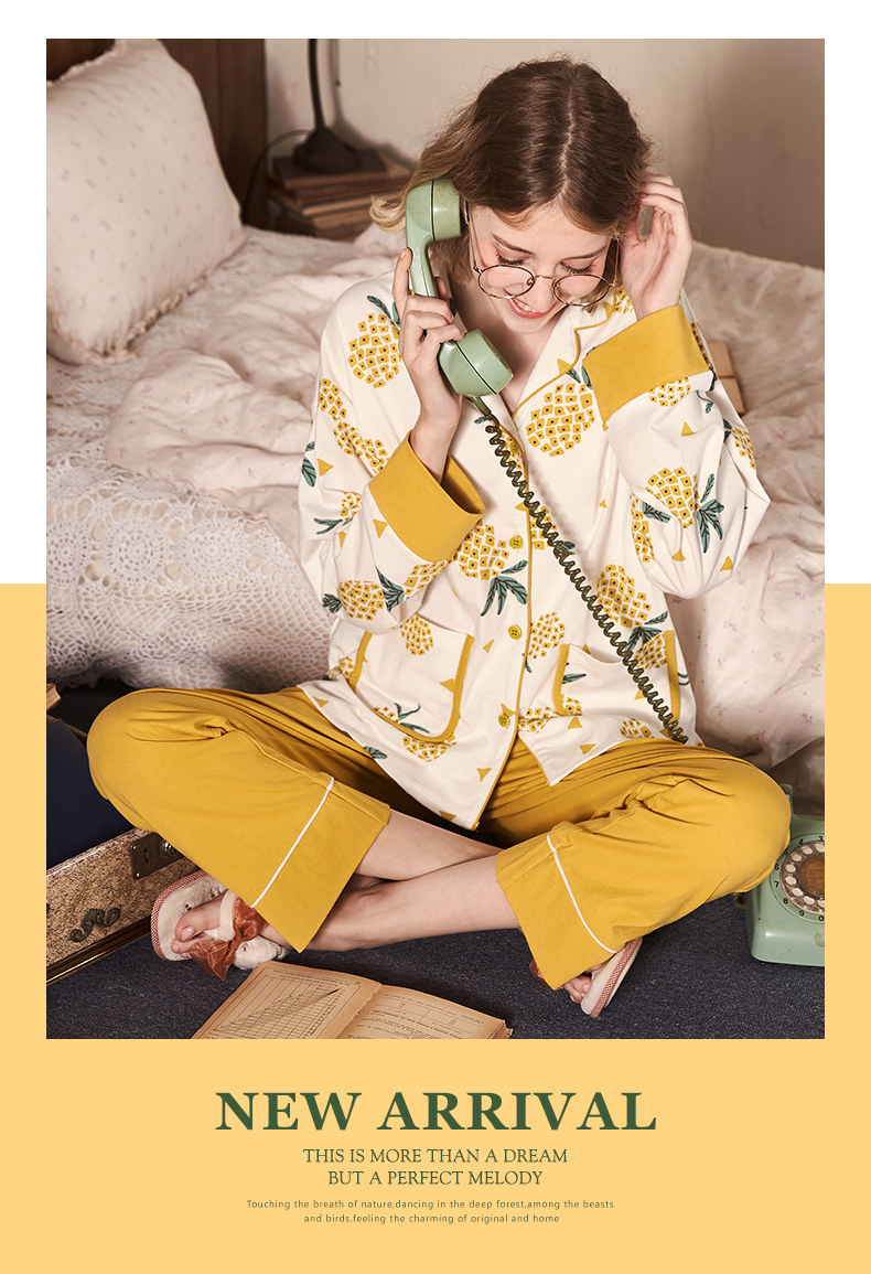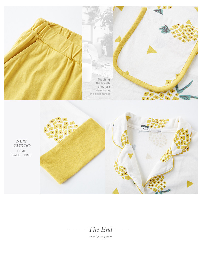 Gukoo/果壳 Хлопковая пижама, осенний лонгслив, комплект, осенняя
