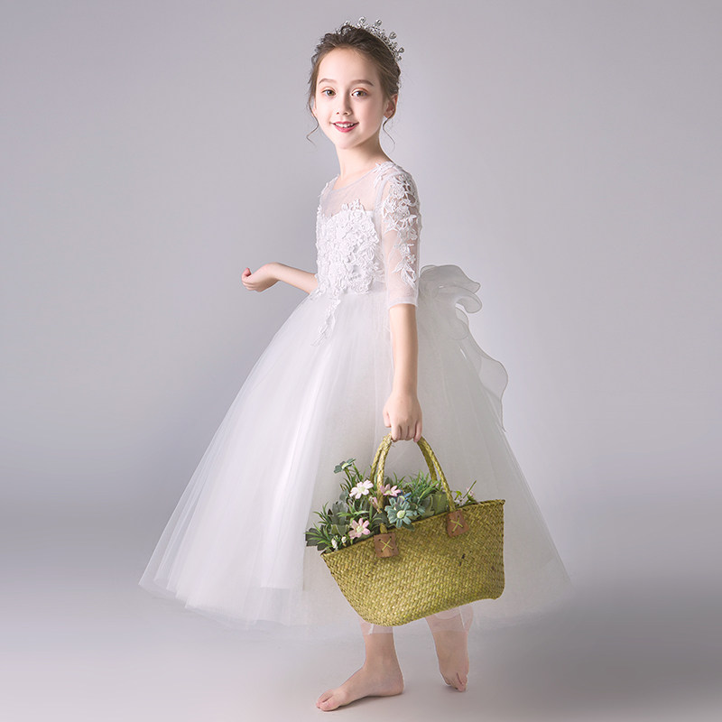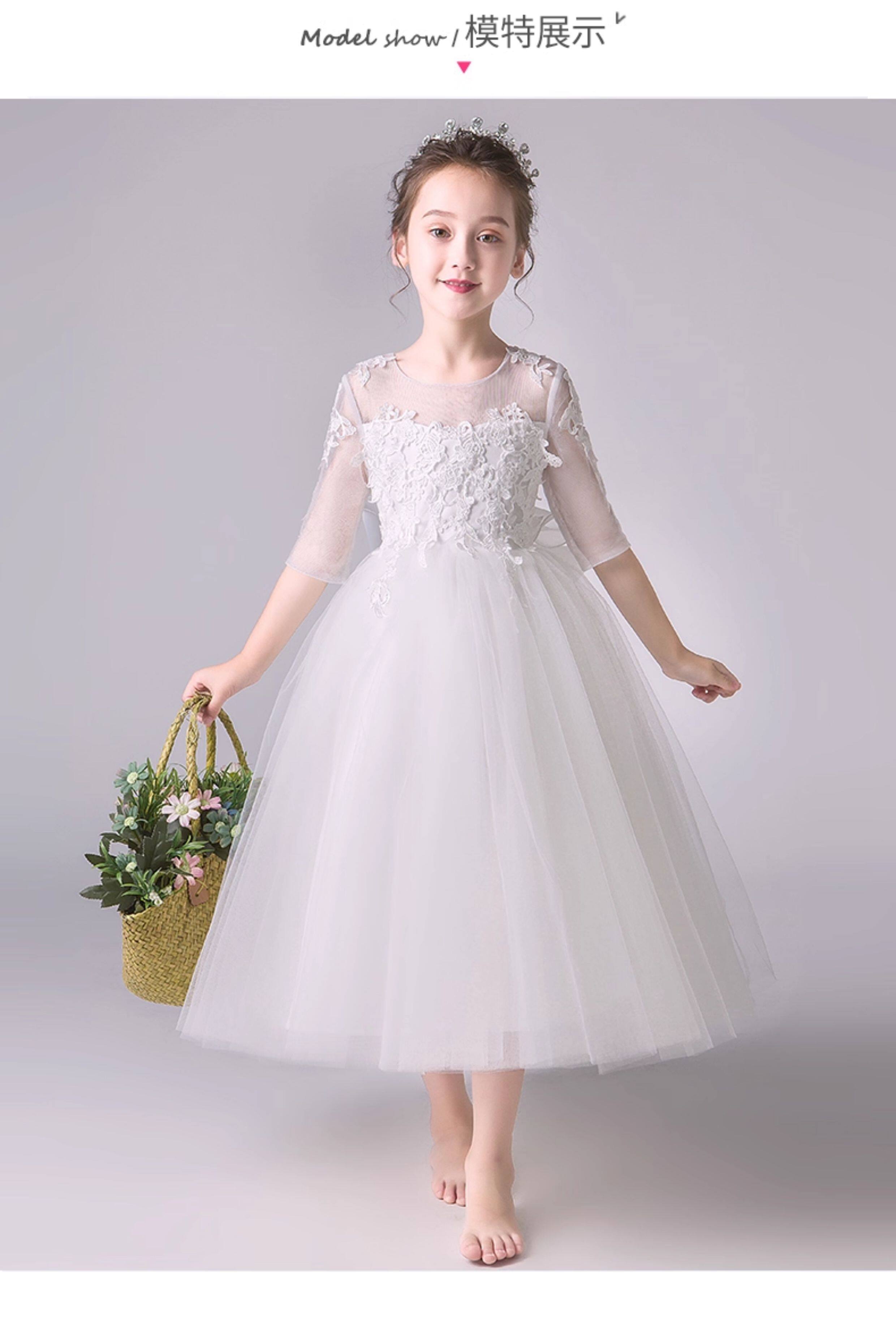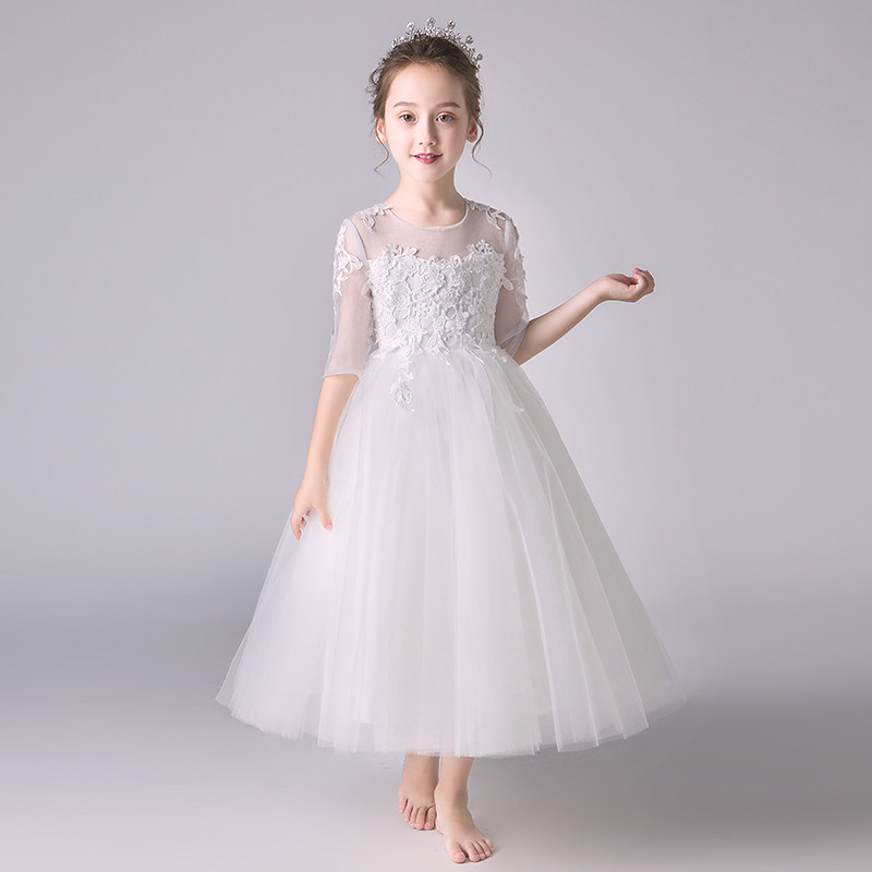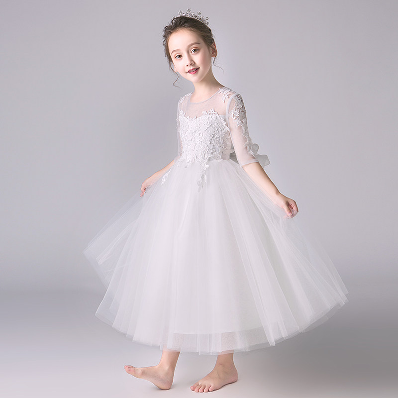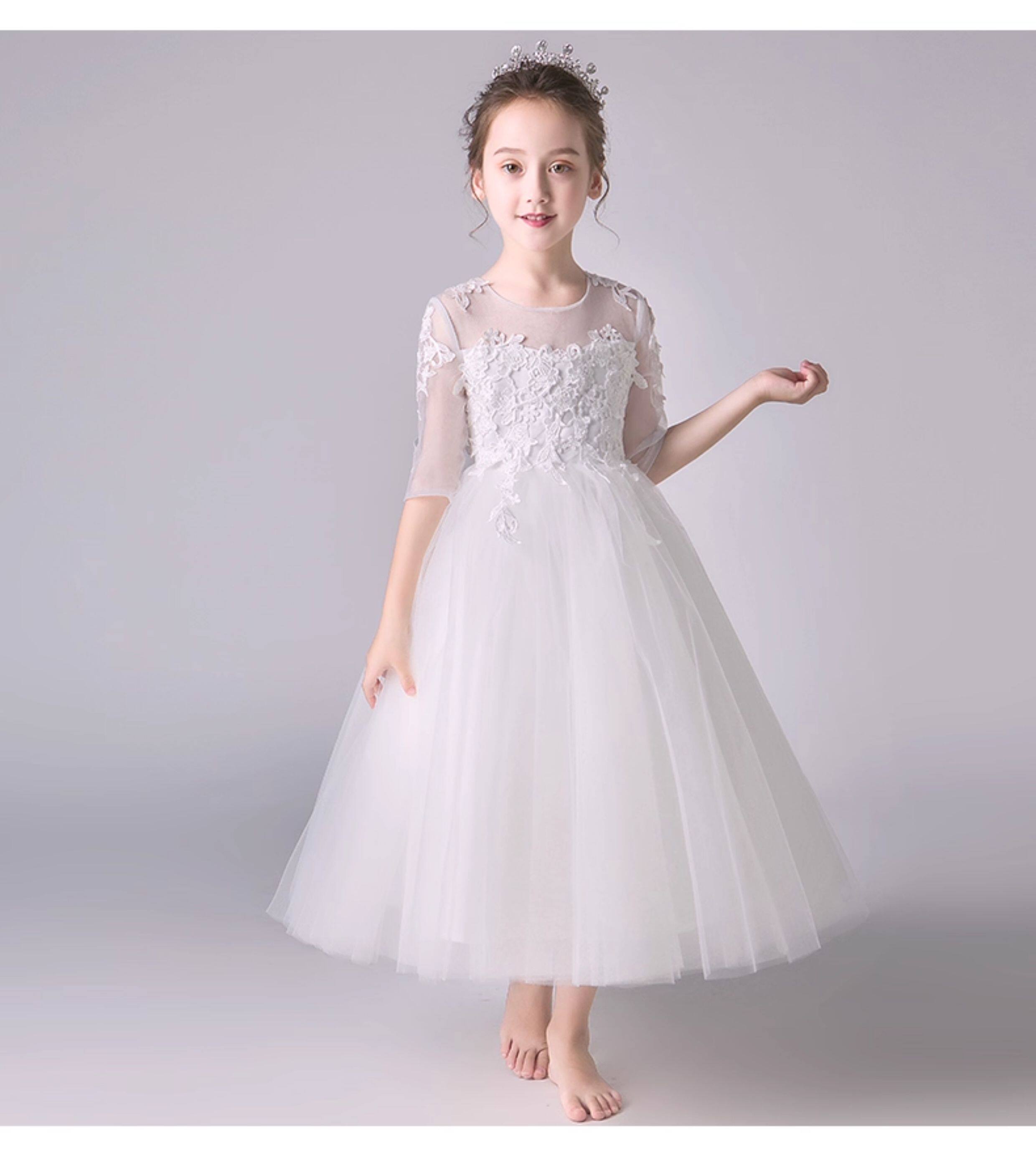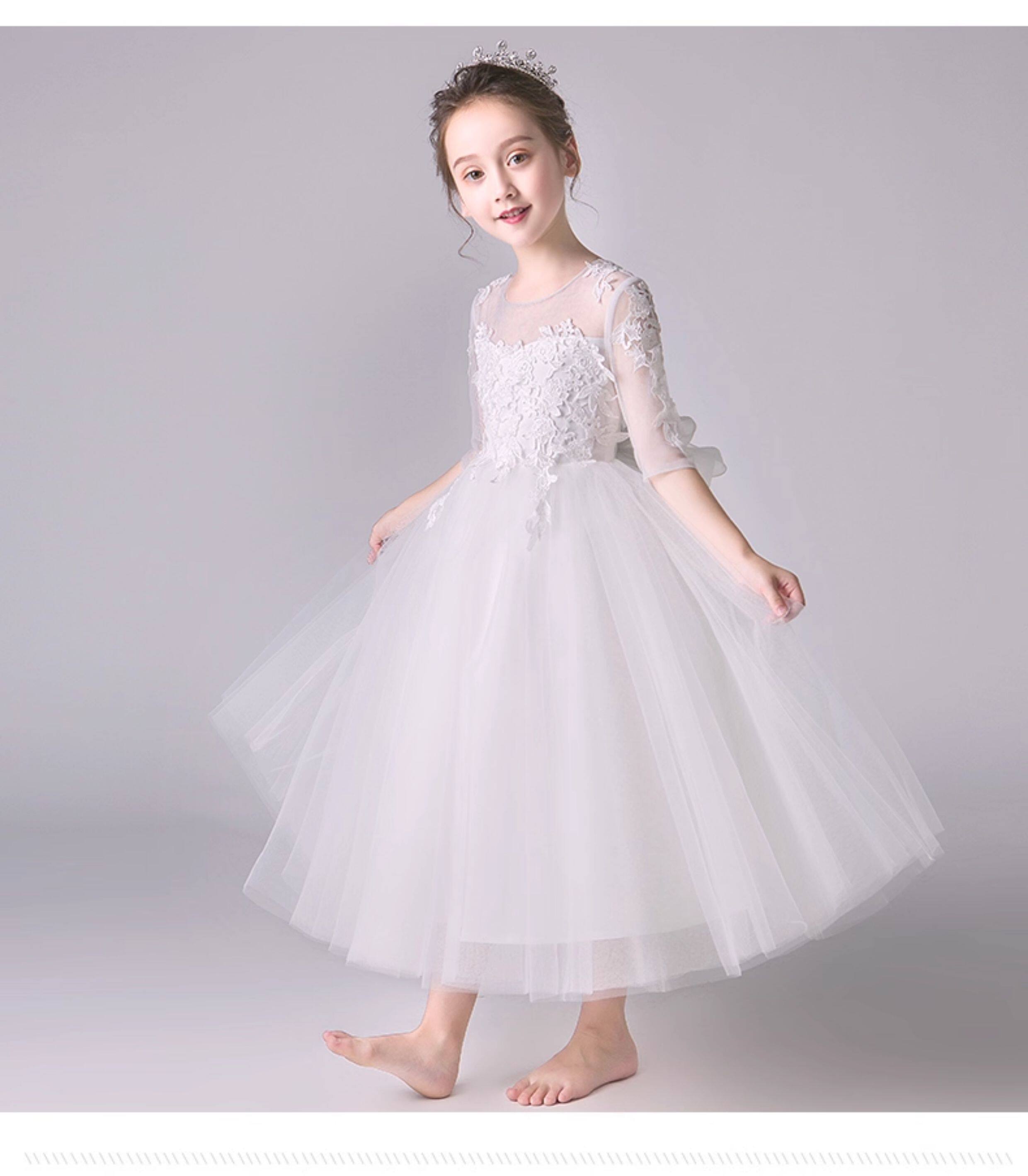 Детский белый наряд маленькой принцессы, наряд для музыкальных выступлений, платье девочки цветочницы, вечернее платье, благородный крой, подарок на день рождения