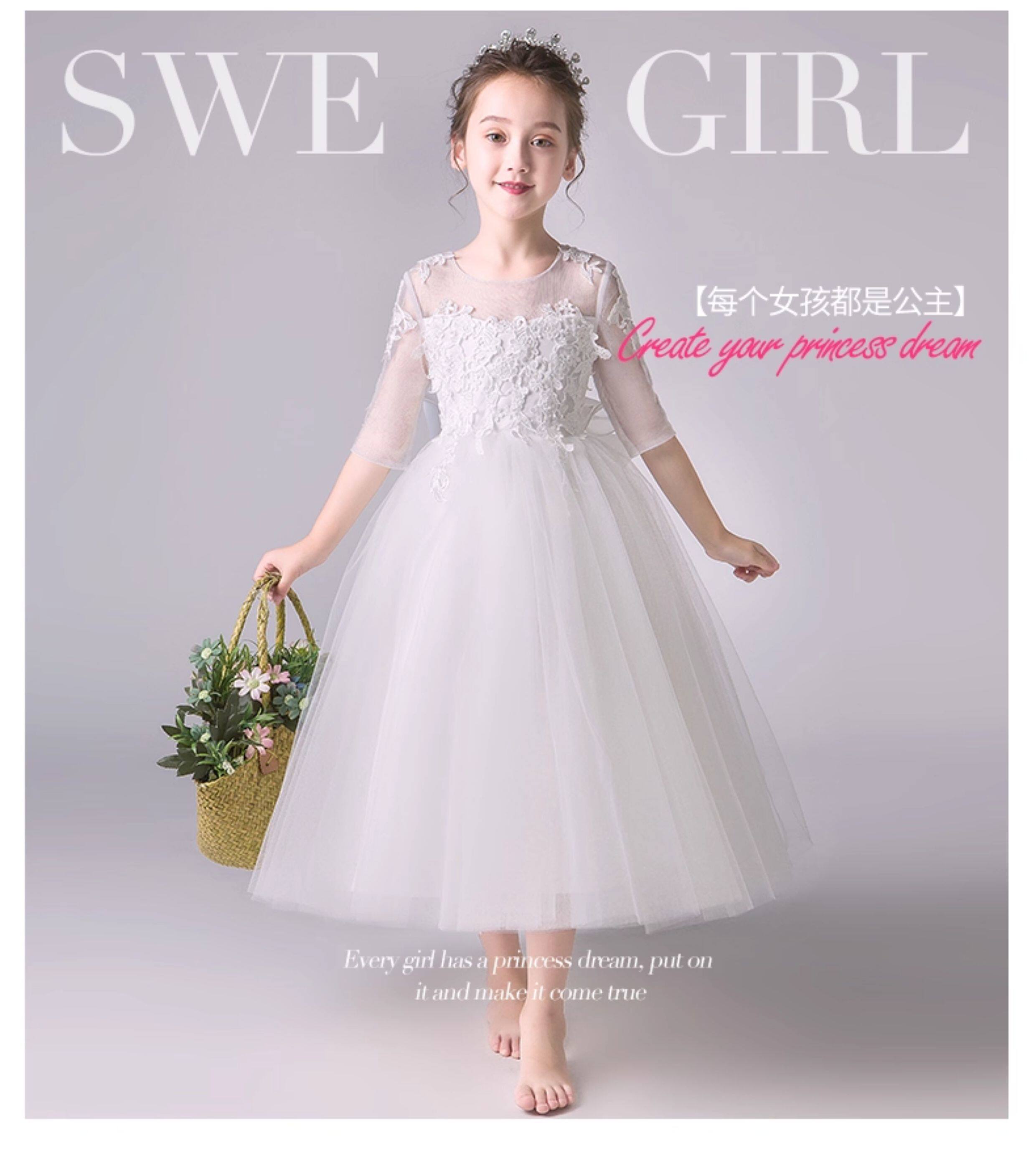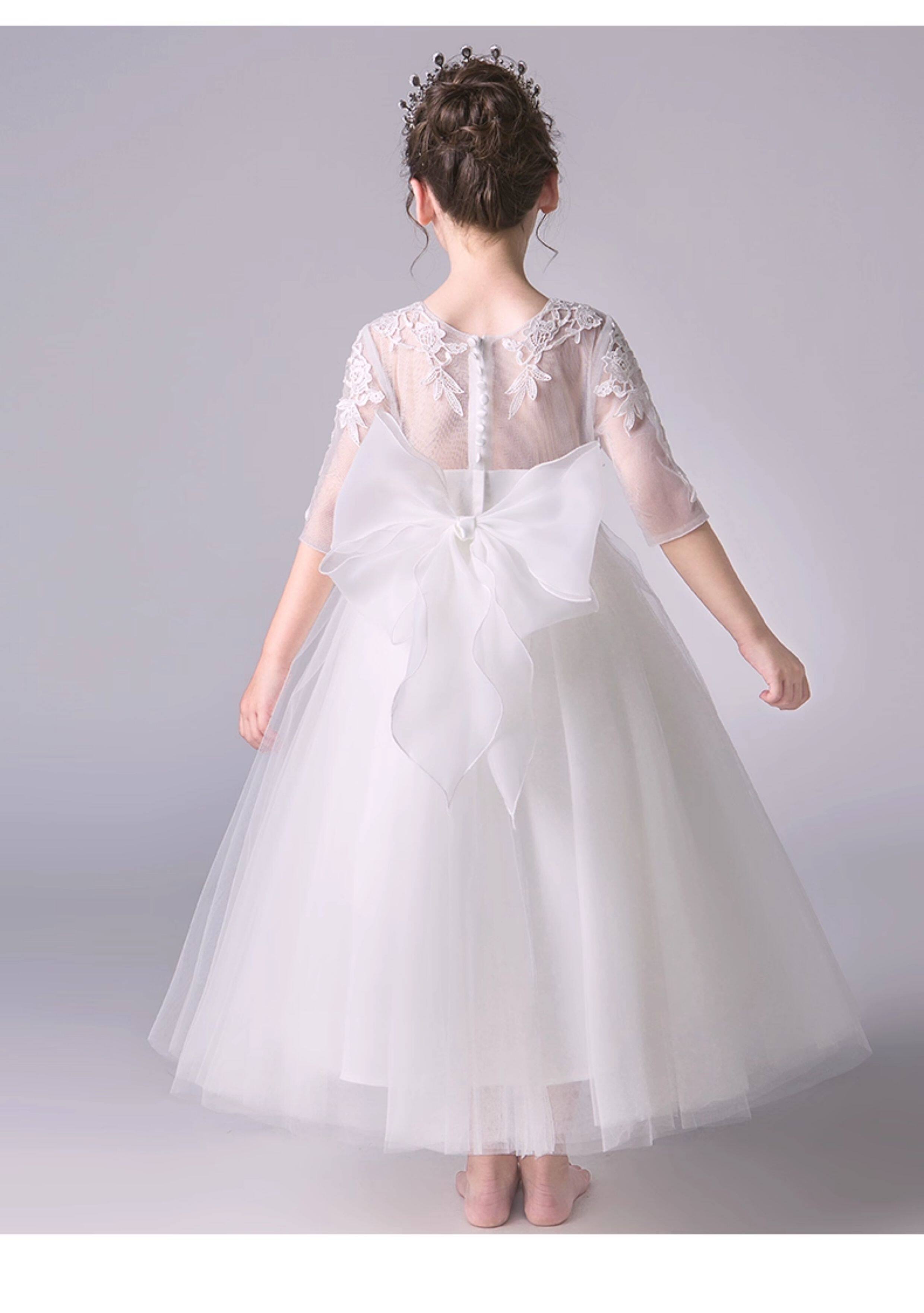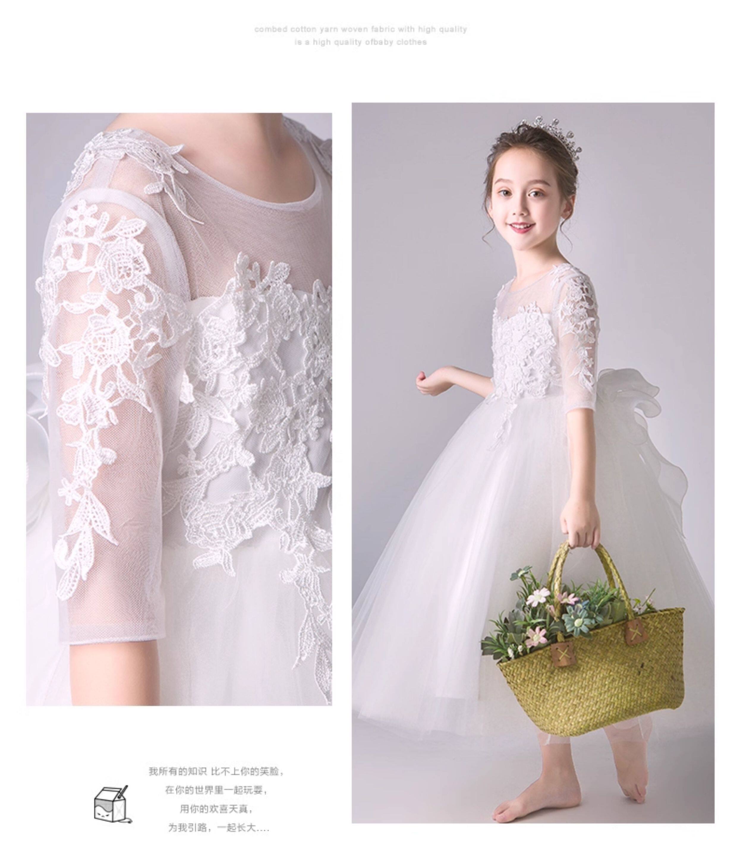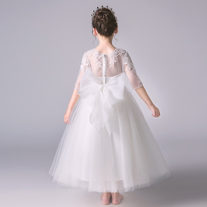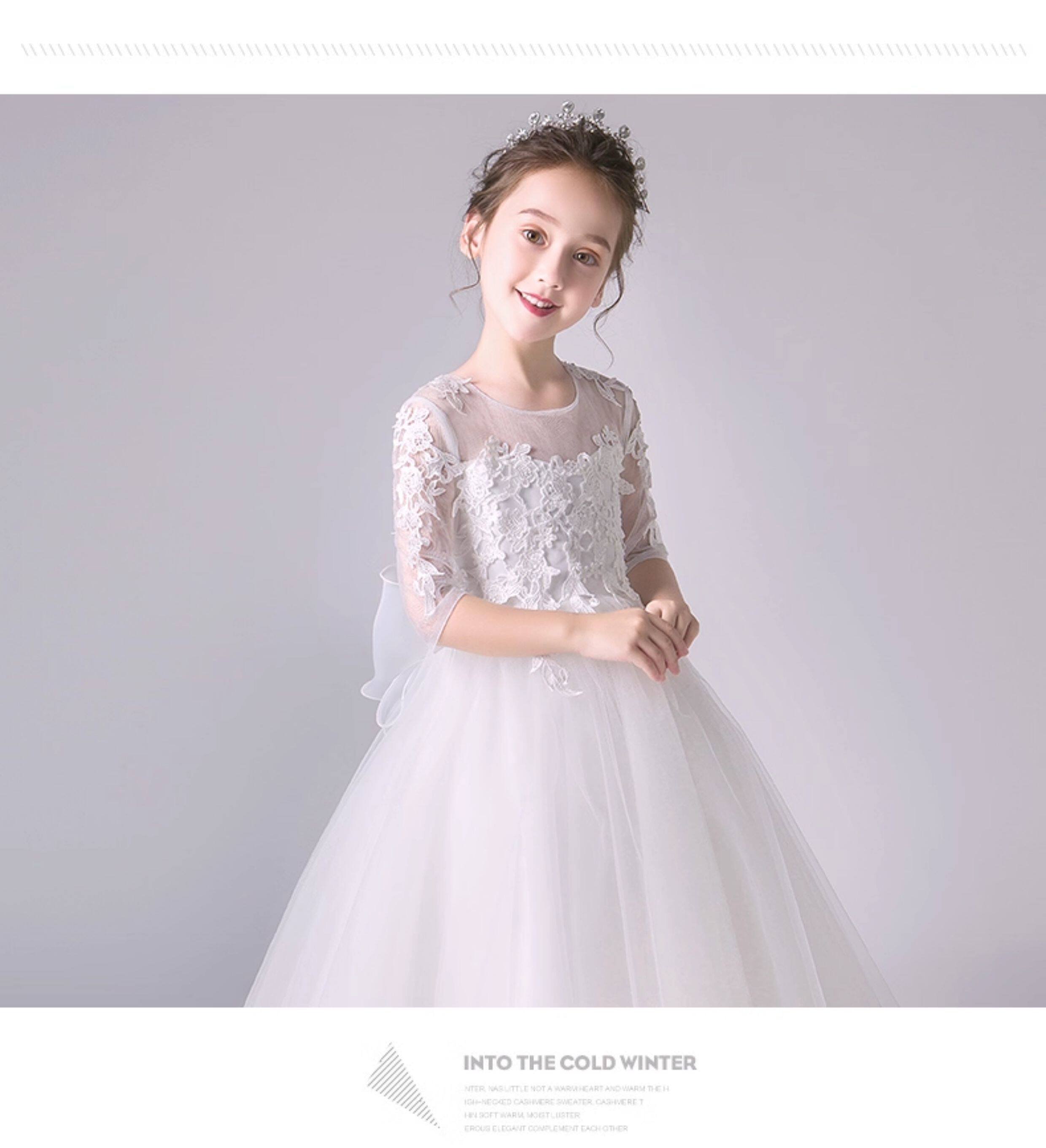 Детский белый наряд маленькой принцессы, наряд для музыкальных выступлений, платье девочки цветочницы, вечернее платье, благородный крой, подарок на день рождения