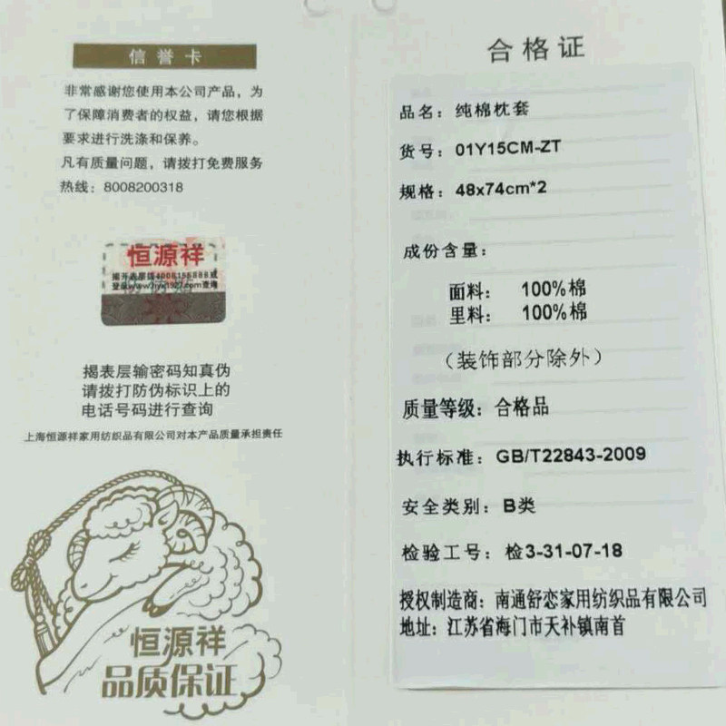 恒源祥 Хлопковая большая наволочка для школьников и студентов, для влюбленных