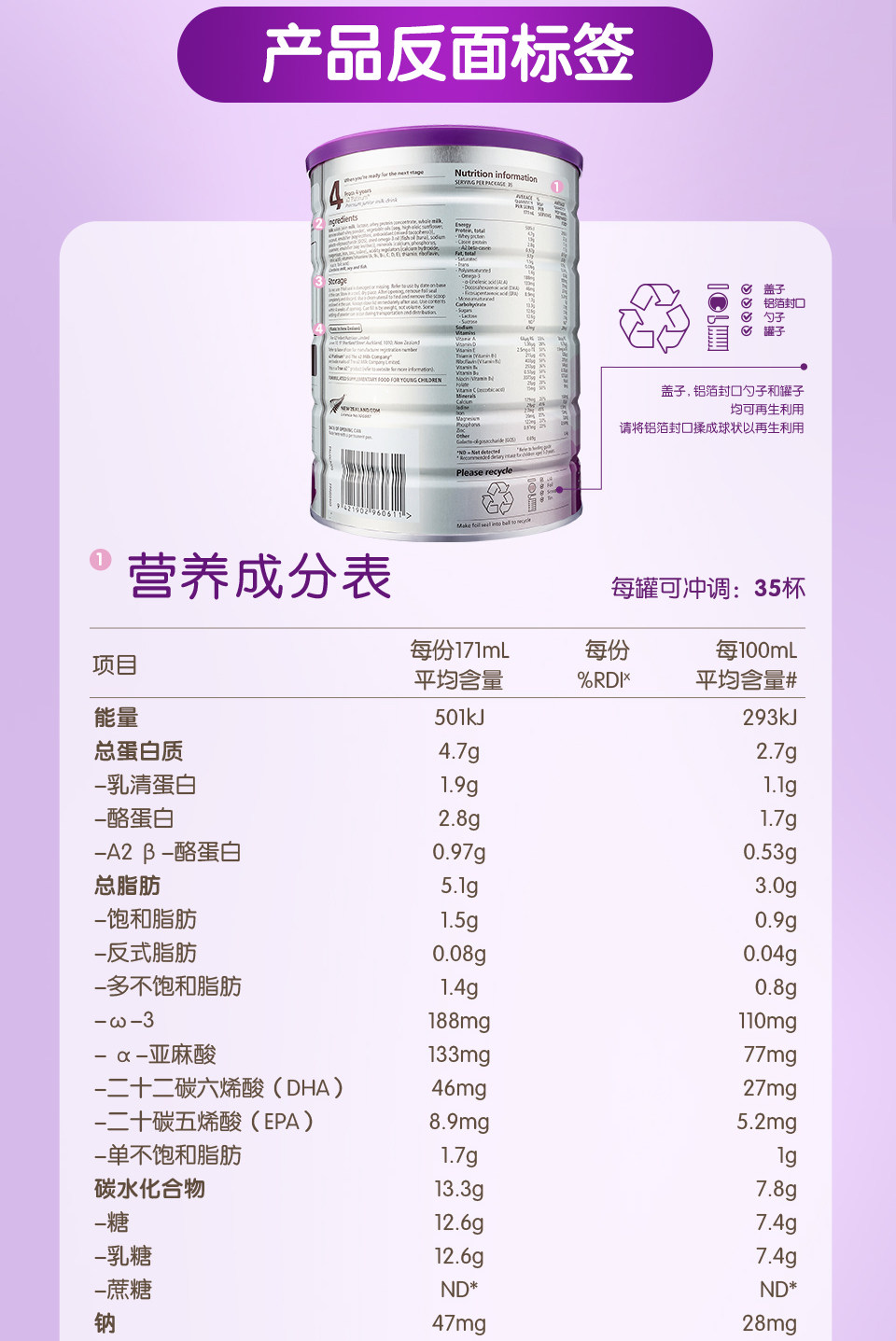Австралия A2 младенческая формула Молоковая порошок 1 Раздел 2 Раздел 3 Сегменты 3 Раздел 4 Новозеландские импортные платины Три секции, четыре секции, четыре секции, один два